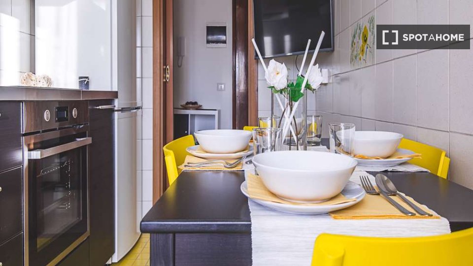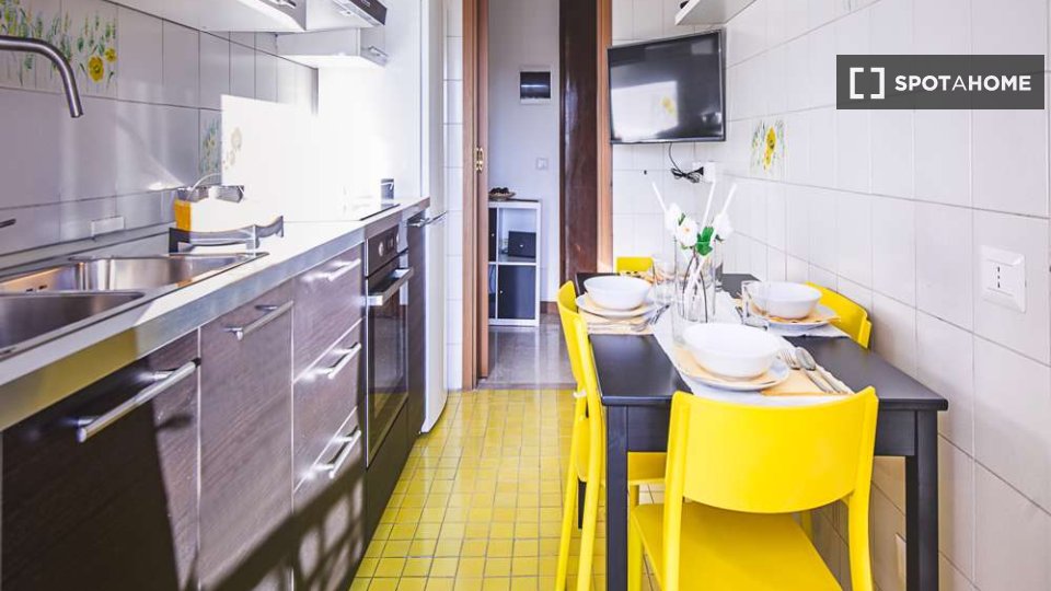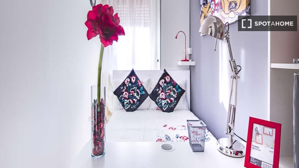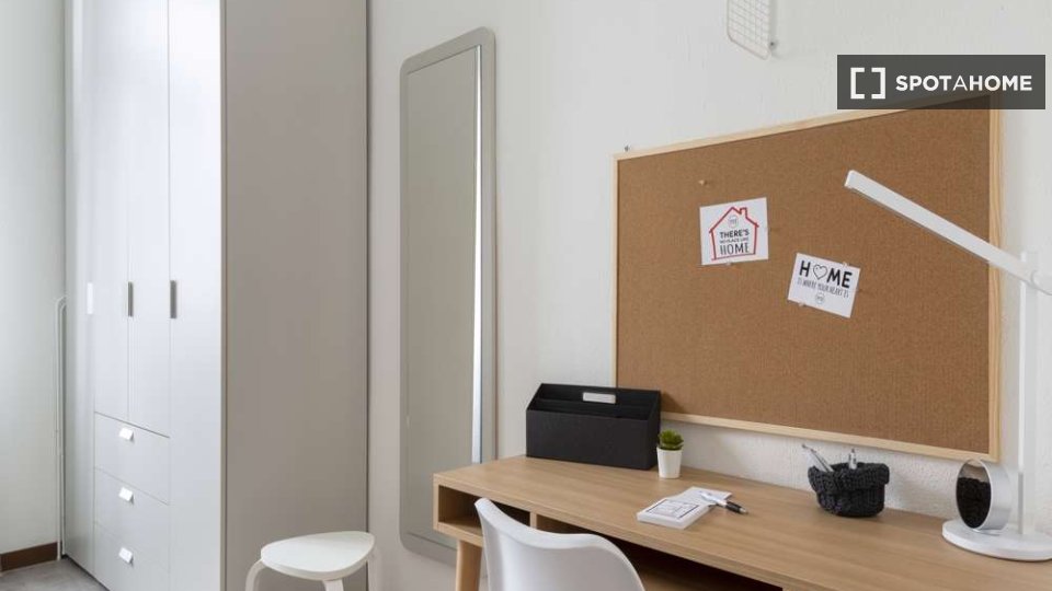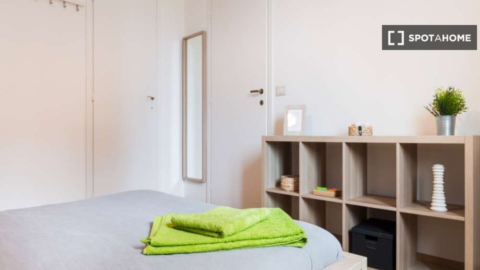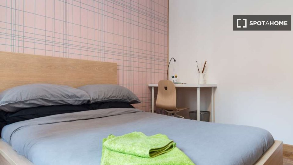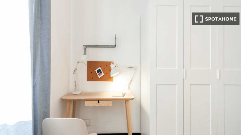 Questa è una stanza in un appartamento condiviso con 3 camere da letto situato nel quartiere Giambellino, Milano. L'appartamento è completamente arredato e include servizi come lavatrice, lavastoviglie, forno e televisione. È dotato di riscaldamen...
