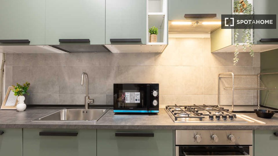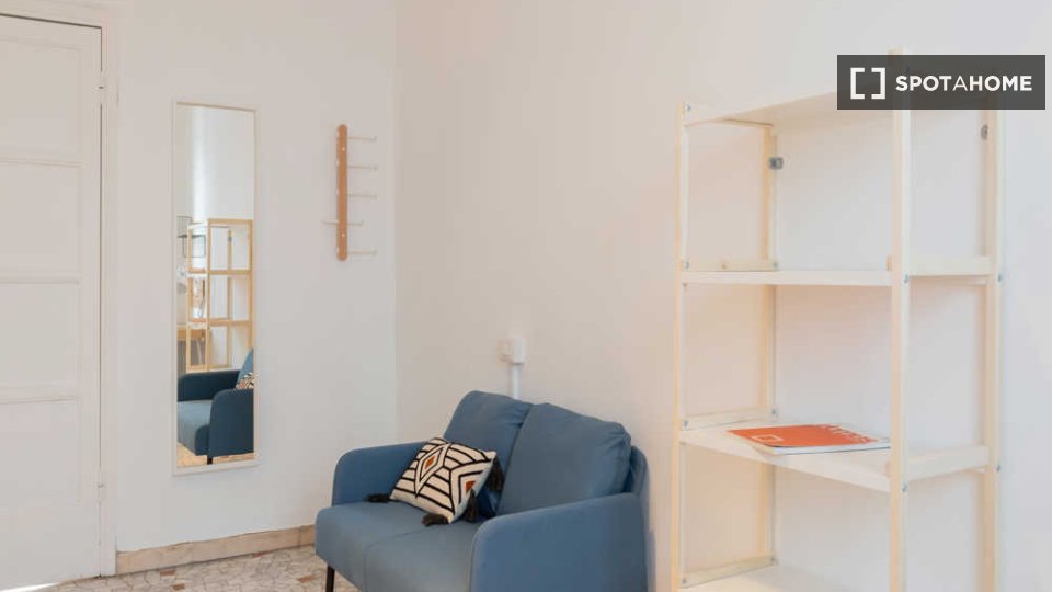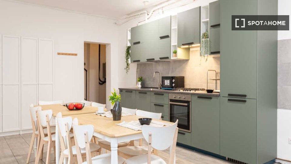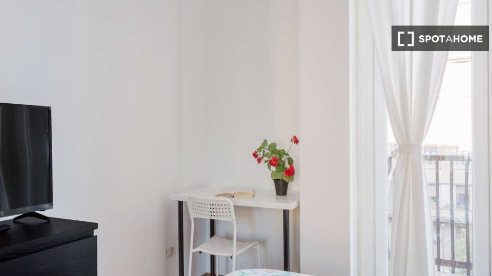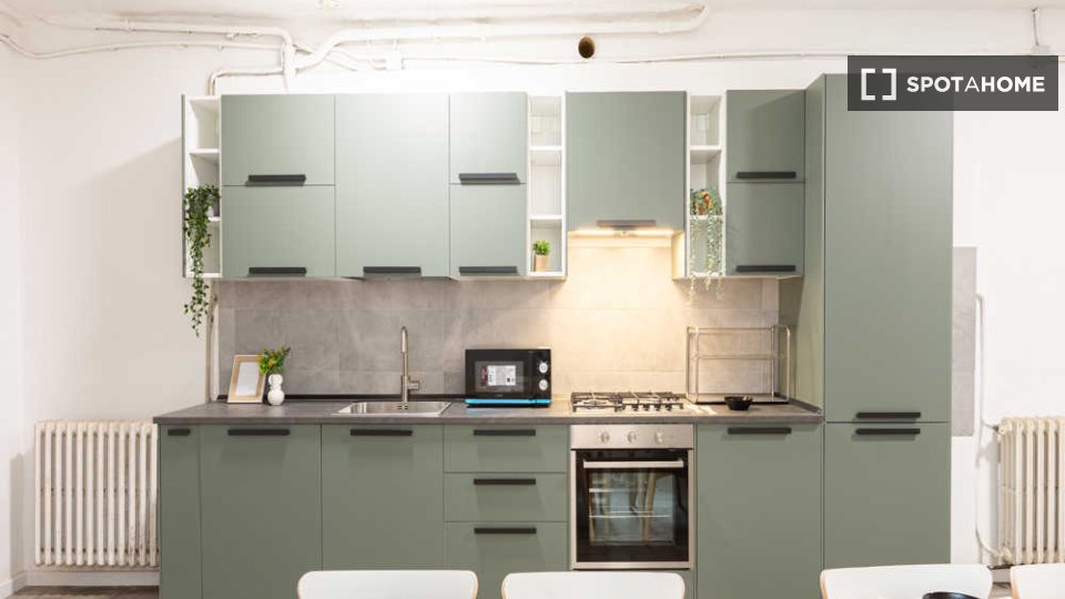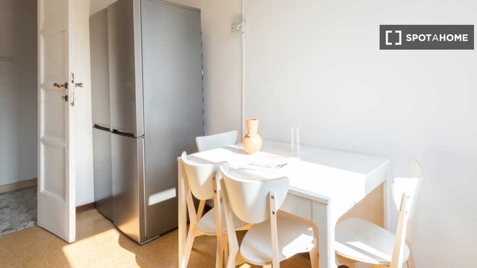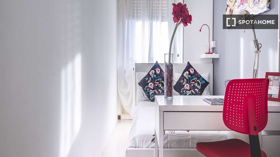 Questa è una stanza in un appartamento condiviso con 3 camere da letto situato nel quartiere Giambellino, Milano. L'appartamento è completamente arredato e include servizi come lavatrice, lavastoviglie, forno e televisione. È dotato di riscaldamen...