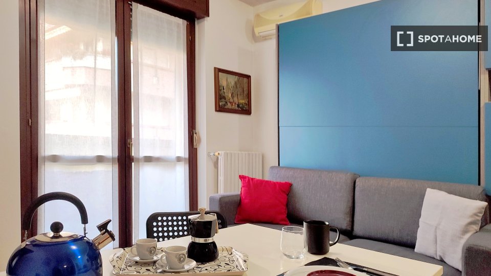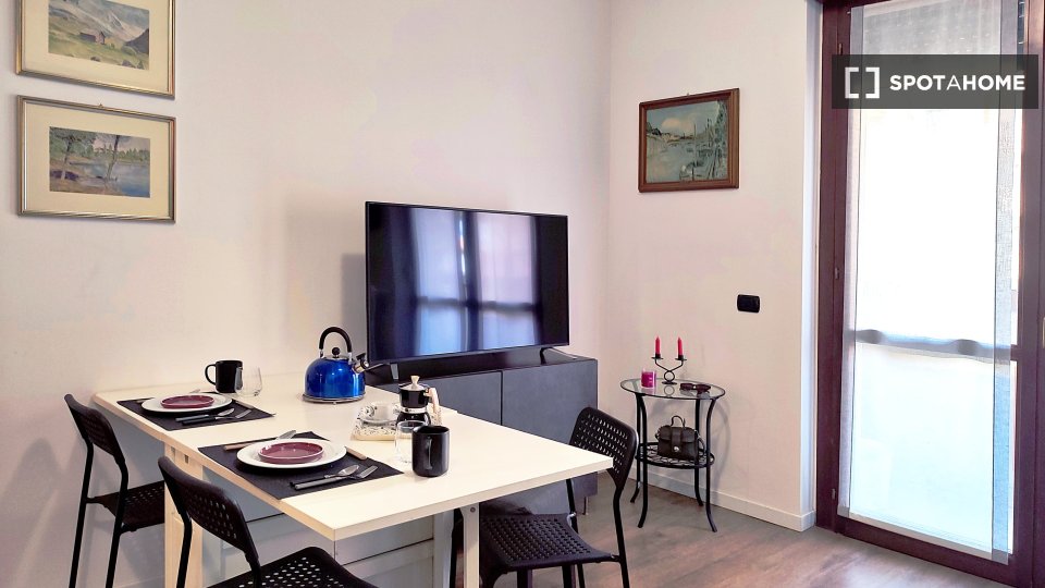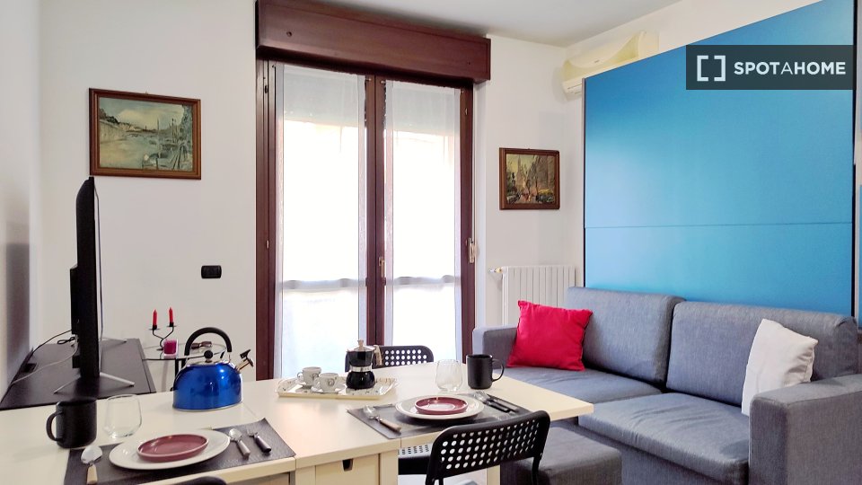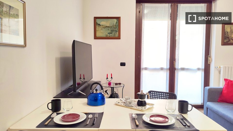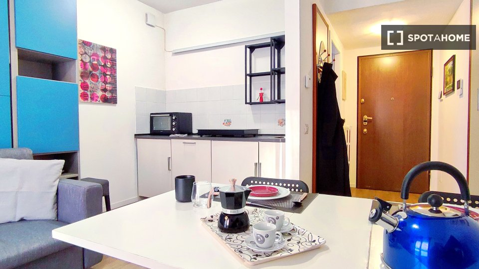 Spotahome presenta questo monolocale completamente arredato in affitto a Caronno Pertusella, Milano. Gli inquilini potranno godere di una cucina ben attrezzata con elettrodomestici moderni come lavastoviglie e lavatrice privata, oltre a una comoda...