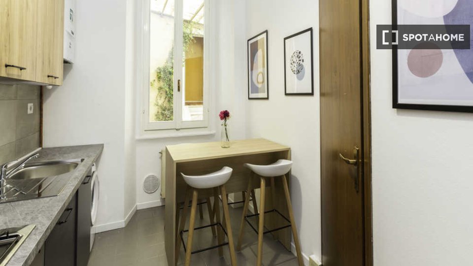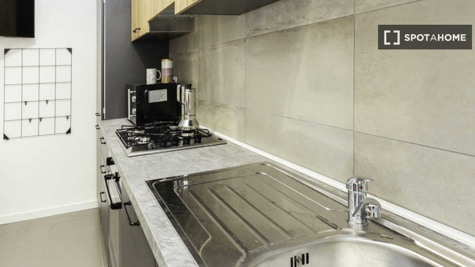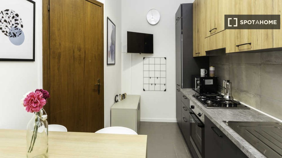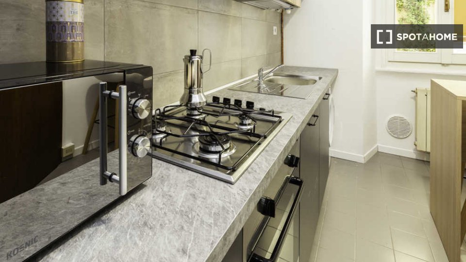 Appartamento ristrutturato nel 2015 al terzo piano di un palazzo con ascensore, composto da una camera singola e una camera doppia (affittabile anche ad uso singola), zona giorno con angolo cottura attrezzato (forno, frigo, freezer, lavastoviglie,...