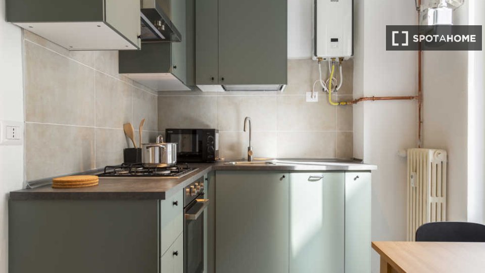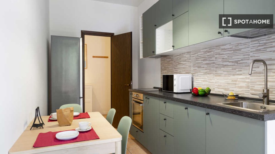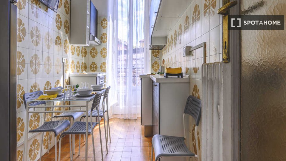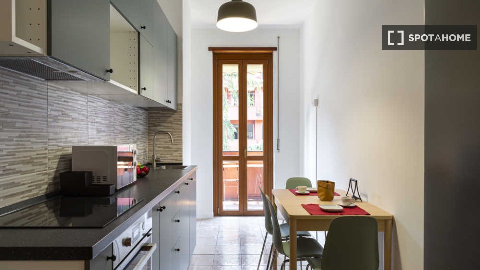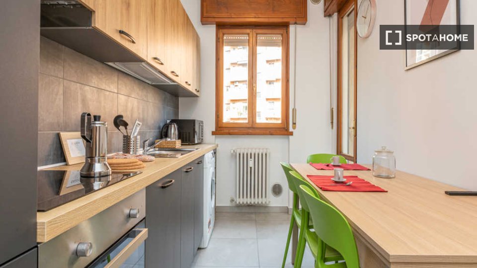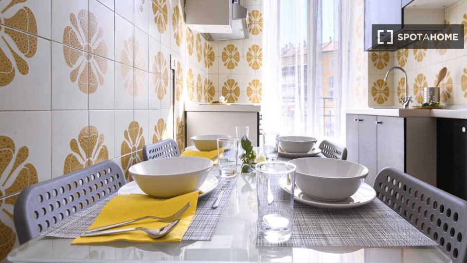 Questo appartamento condiviso con 4 camere da letto situato a Guastalla, Milano, è perfetto per professionisti e studenti. L'appartamento è arredato e include una lavatrice privata, una cucina completamente attrezzata con lavastoviglie e forno, ol...