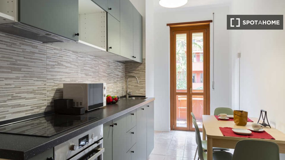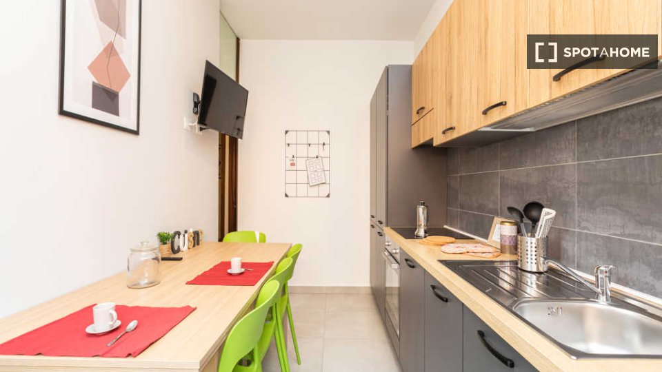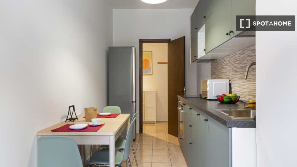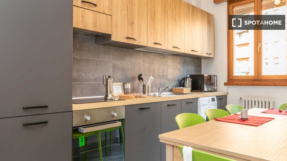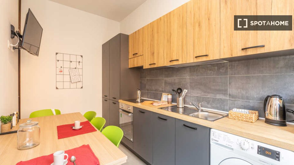 Questo appartamento condiviso con 3 camere da letto è perfetto per professionisti e studenti. È completamente arredato e offre comfort e praticità. La cucina è dotata di elettrodomestici moderni, tra cui lavastoviglie e forno, e c'è una lavatrice ...