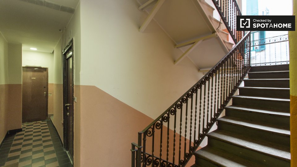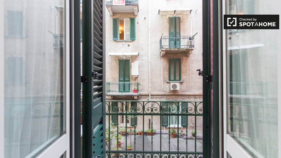 Questa camera esterna in un appartamento condiviso con 5 camere da letto a Porta Ticinese è completamente arredata e dotata di riscaldamento centralizzato. L'appartamento dispone di un balcone e include servizi essenziali come lavatrice e forno. T...