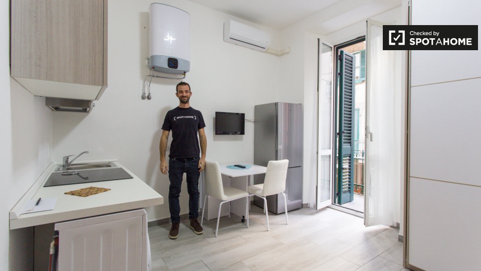 Questo grazioso monolocale nel Rione Ponte, a Roma, è ideale per chi cerca uno spazio accogliente e arredato. Il monolocale è dotato di una cucina attrezzata e di una confortevole zona giorno con TV. Si prega di notare che le bollette di elettrici...