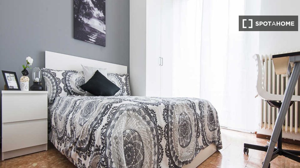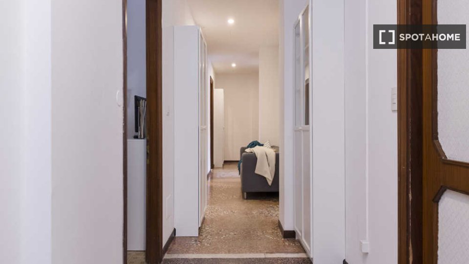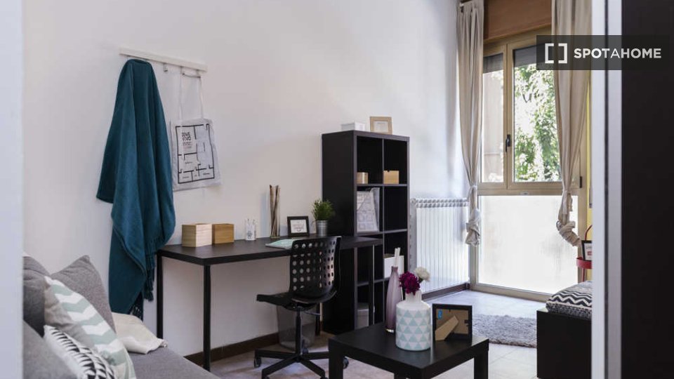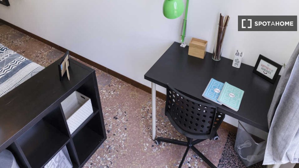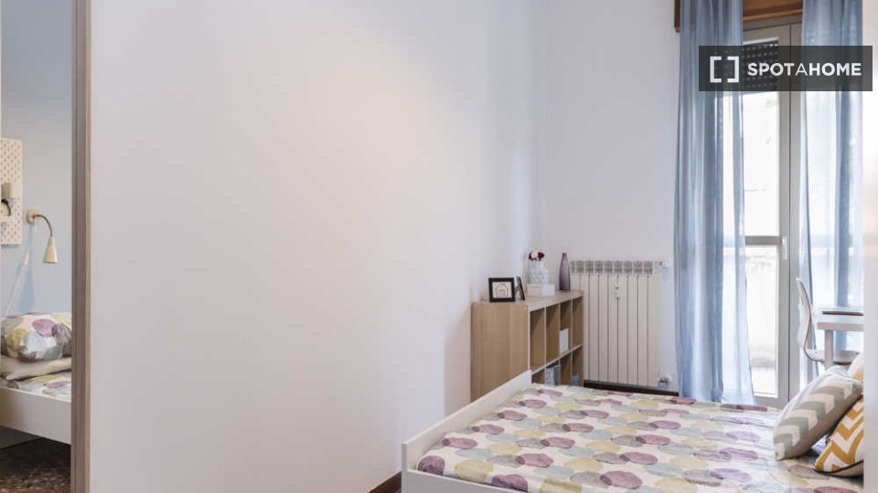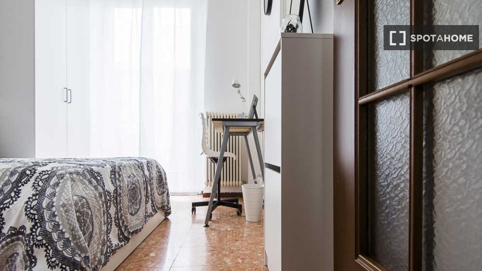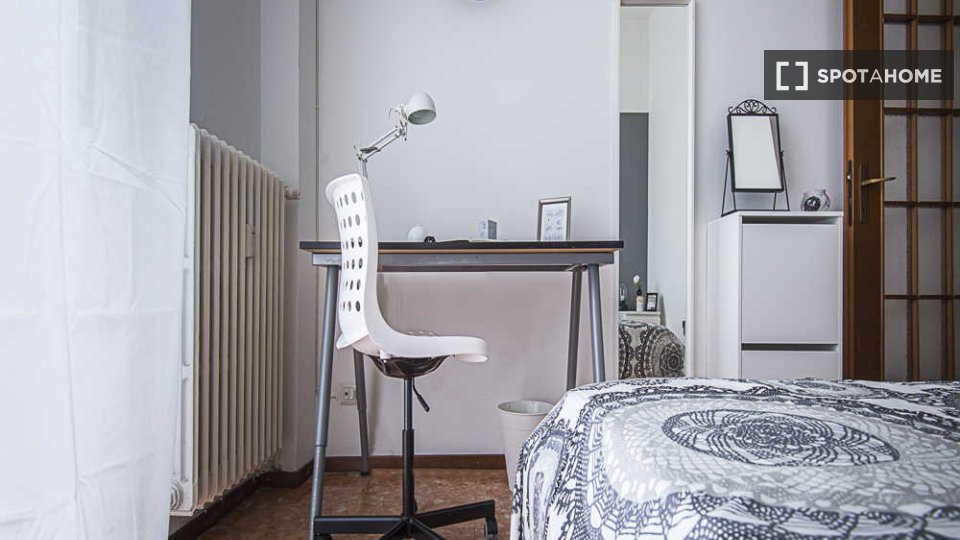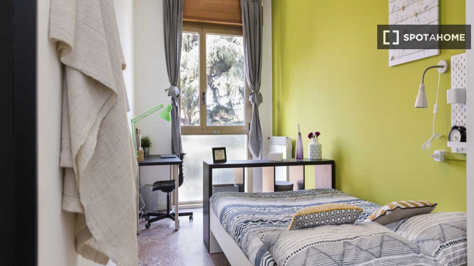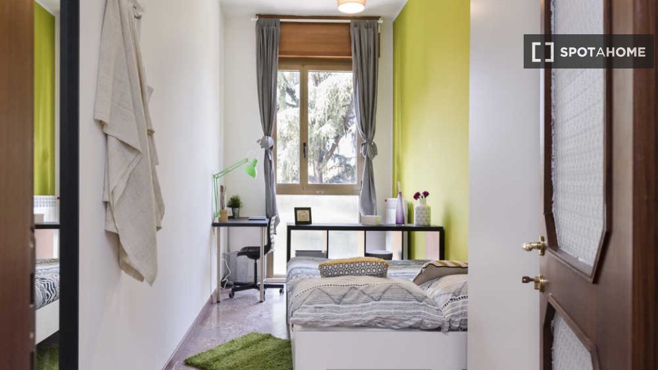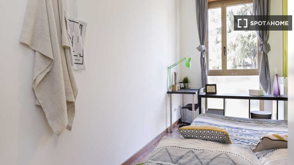 Questa stanza in un appartamento condiviso con 6 camere da letto situato a Malpighi, Bologna, è completamente arredata e attrezzata per un soggiorno confortevole. L'appartamento è dotato di riscaldamento centralizzato e acqua calda, lavatrice priv...