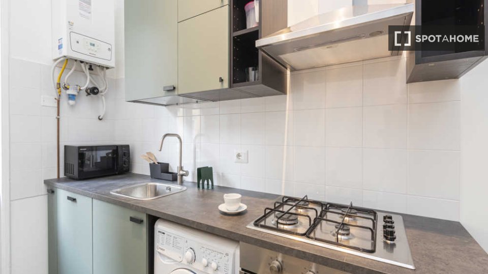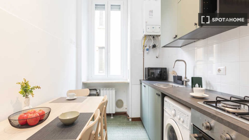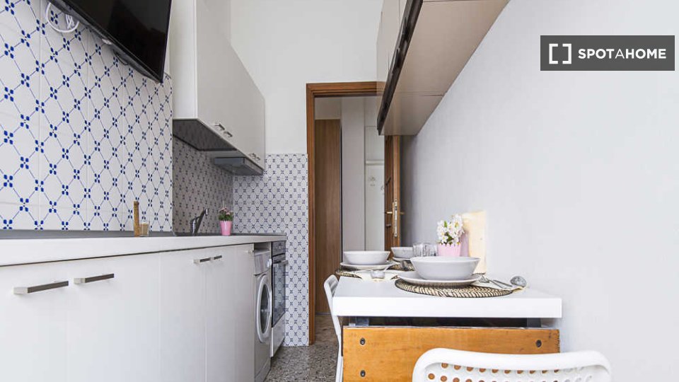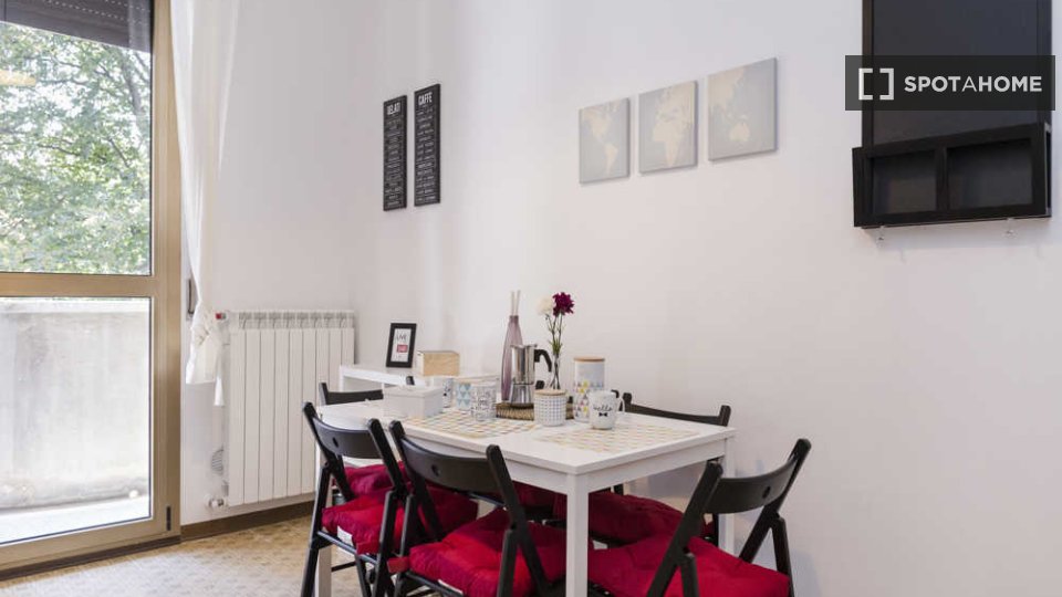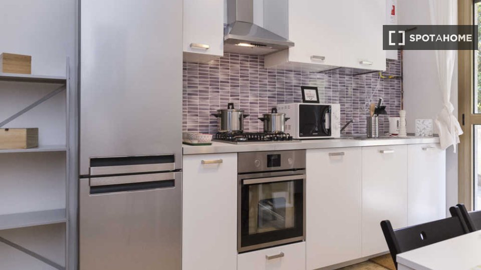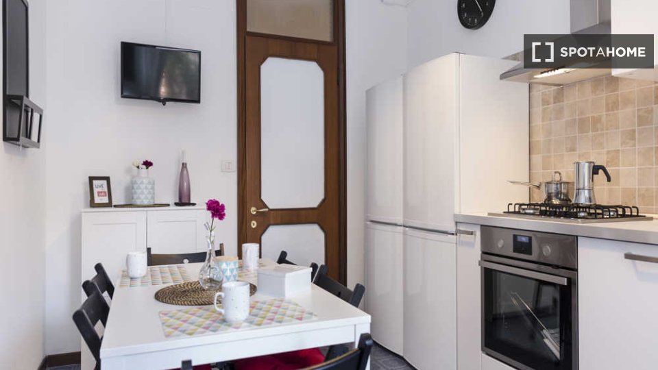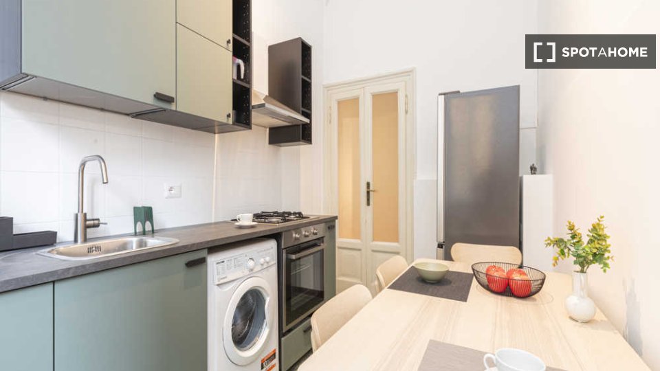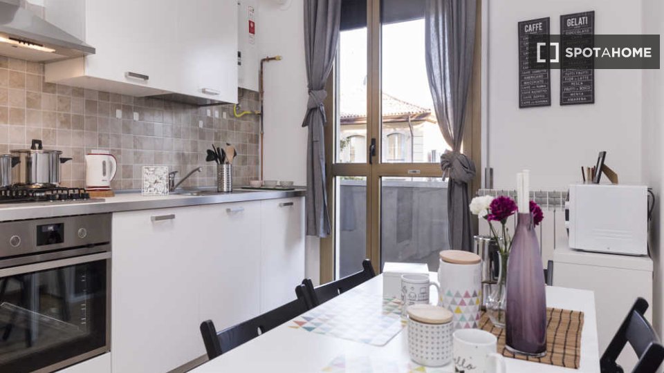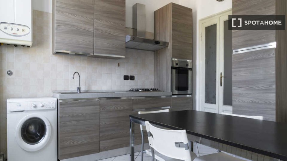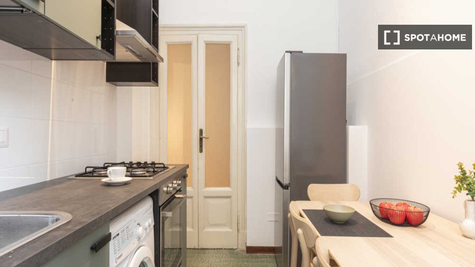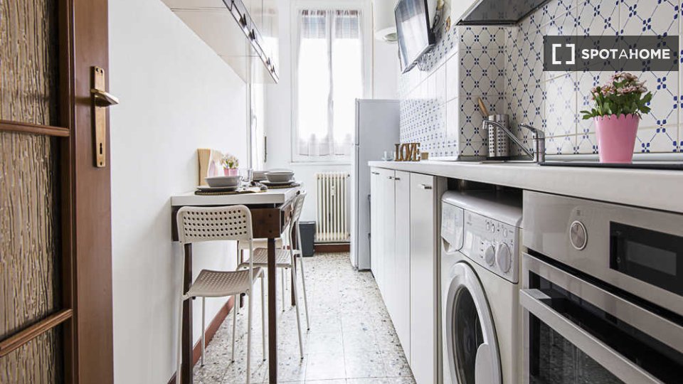 Questa camera arredata in un appartamento condiviso con 3 camere da letto situato nel quartiere Tibaldi di Milano è perfetta per professionisti o studenti. L'appartamento vanta una cucina attrezzata, una lavatrice privata e altri comfort come lava...