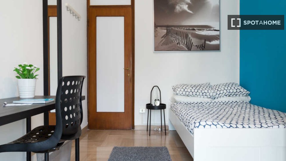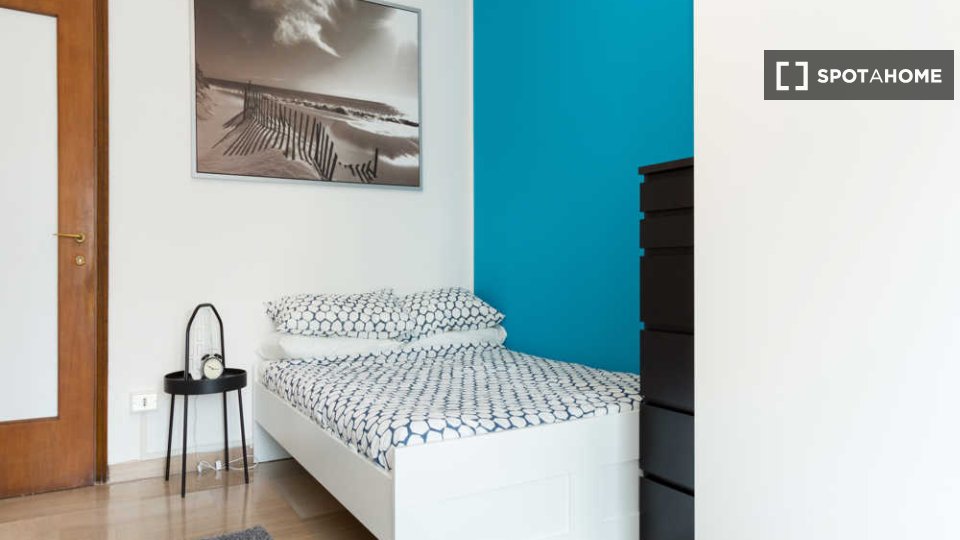 Questa è una stanza arredata in un appartamento condiviso con 4 camere da letto situato in Via Carlo Botta, a Milano. L'appartamento offre aria condizionata centralizzata per garantire il comfort tutto l'anno e dispone di una cucina attrezzata con...