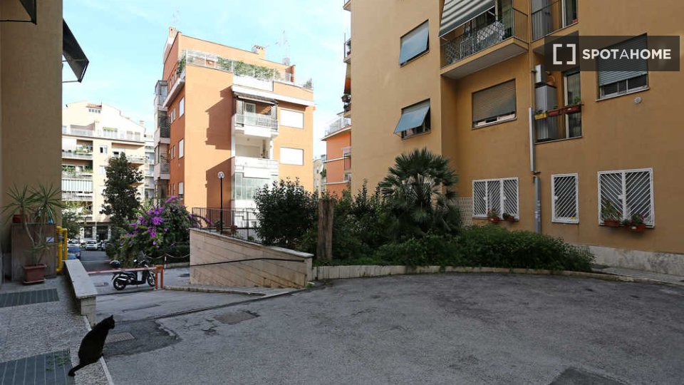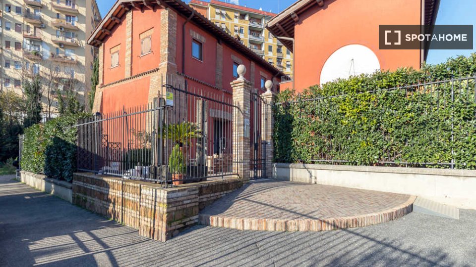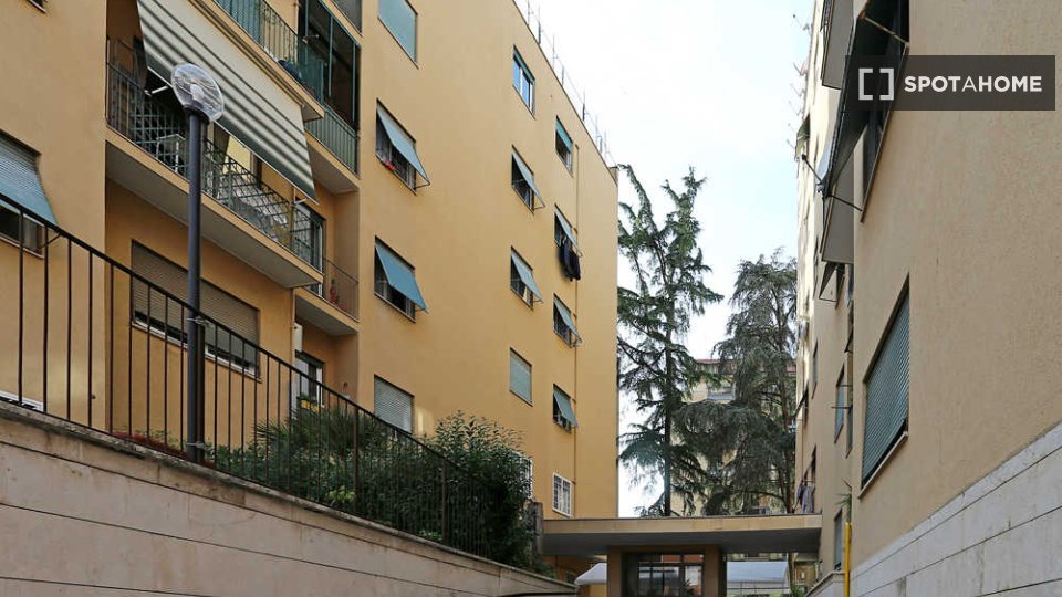 Questa elegante camera si trova in un appartamento condiviso con 5 camere da letto nel quartiere Trionfale di Medaglie d'Oro. Adatto solo a donne lavoratrici o studentesse. La camera e l'immobile sono completamente arredati e includono servizi com...