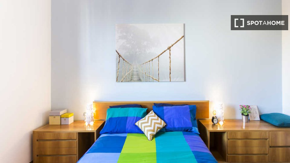 Scoprite il comfort e la praticità di questa spaziosa camera arredata all'interno di un appartamento condiviso con 5 camere da letto a Farini, Milano. L'appartamento è ben tenuto e offre riscaldamento centralizzato, lavatrice privata e lavastovigl...