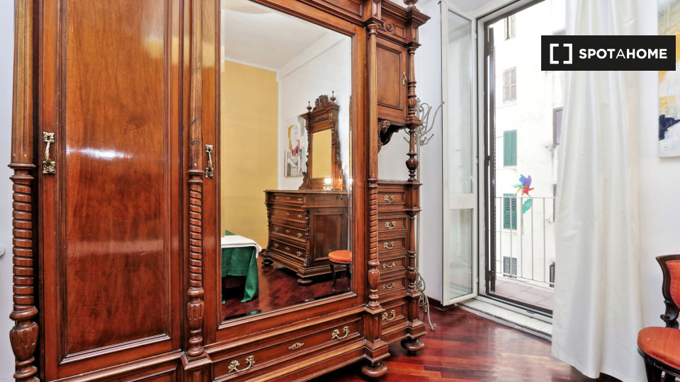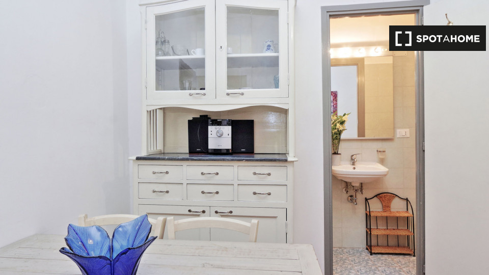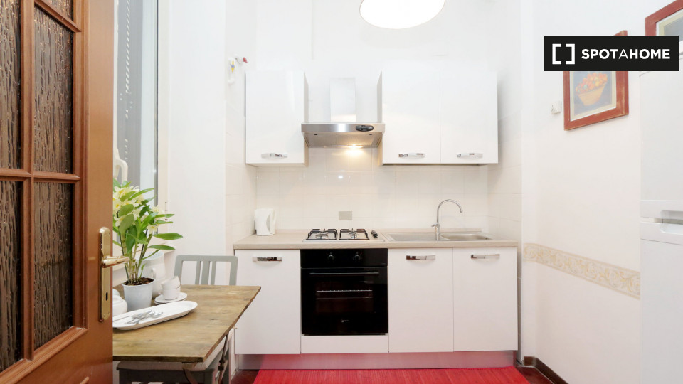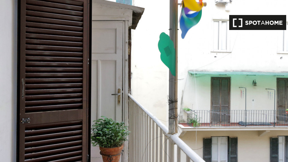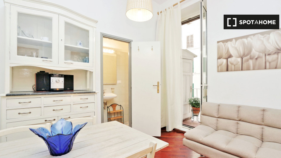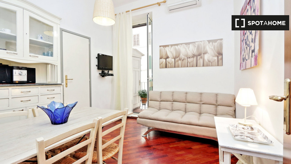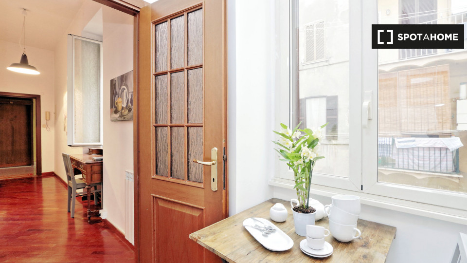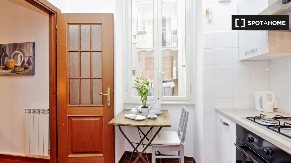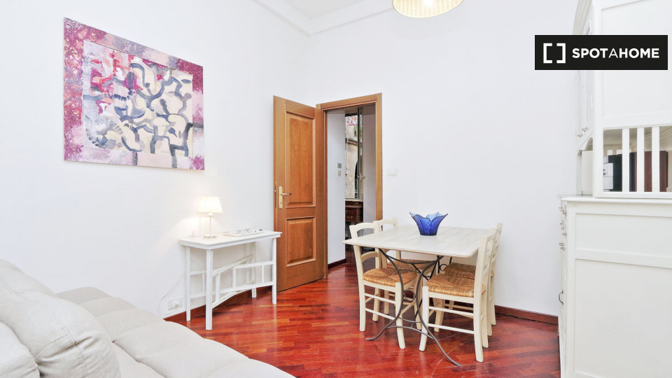 Esplora questo grazioso appartamento con una camera da letto disponibile per l'affitto nello storico Rione Monti, a Roma. L'appartamento è completamente arredato e dotato di comfort moderni, tra cui un sistema di aria condizionata centralizzato, u...