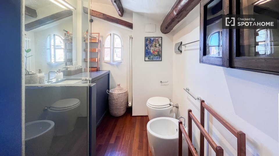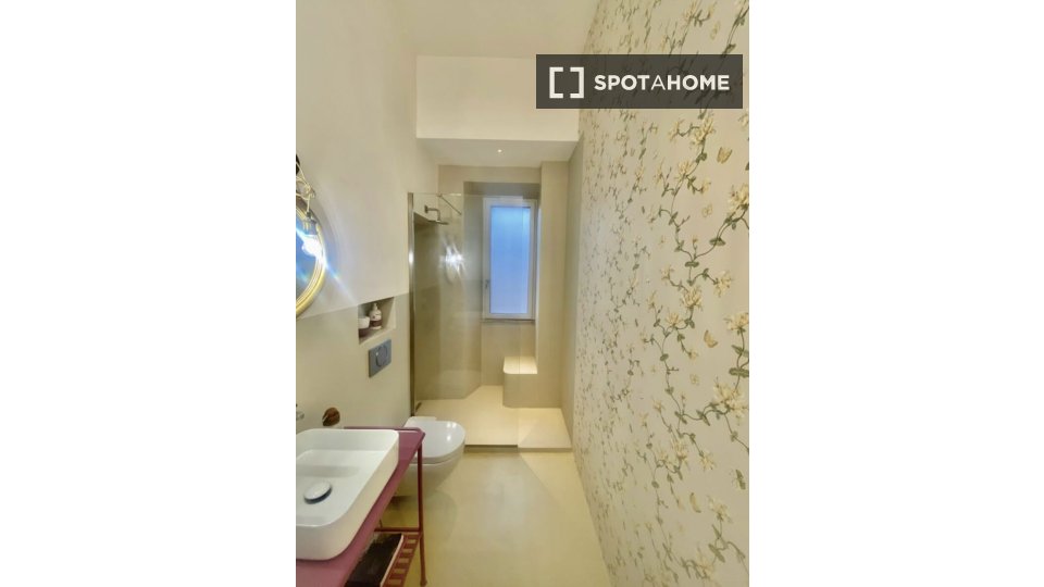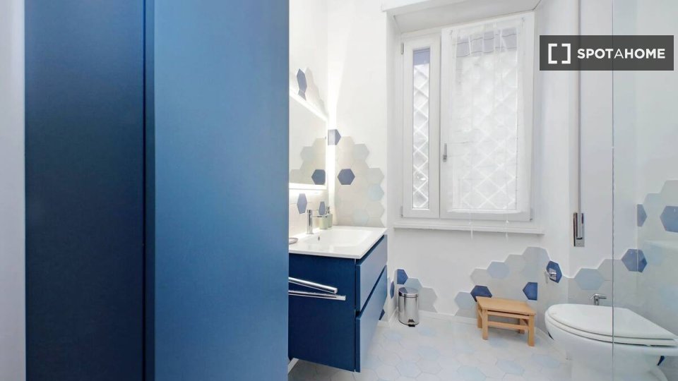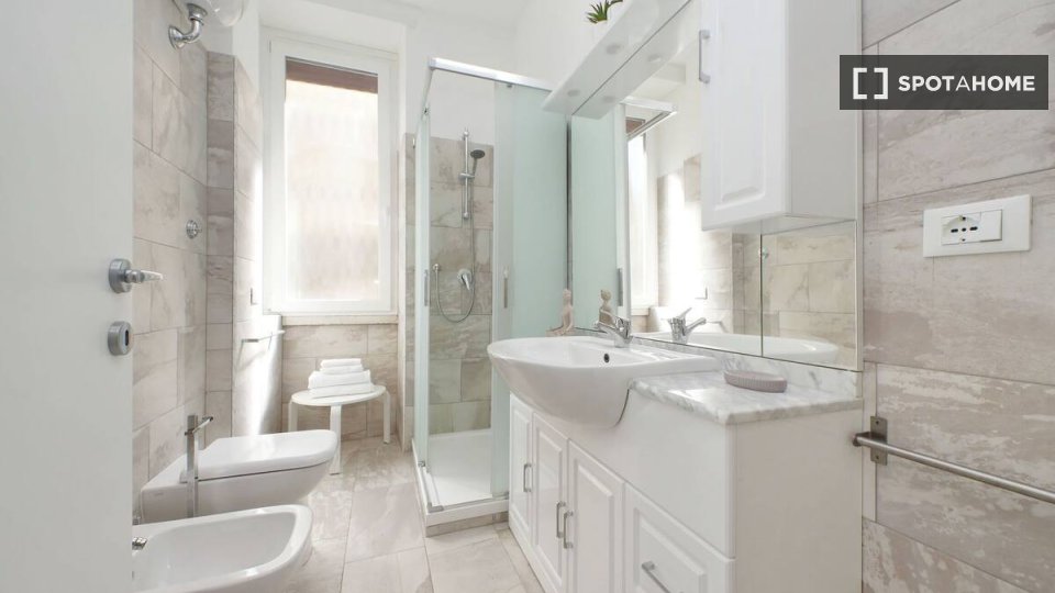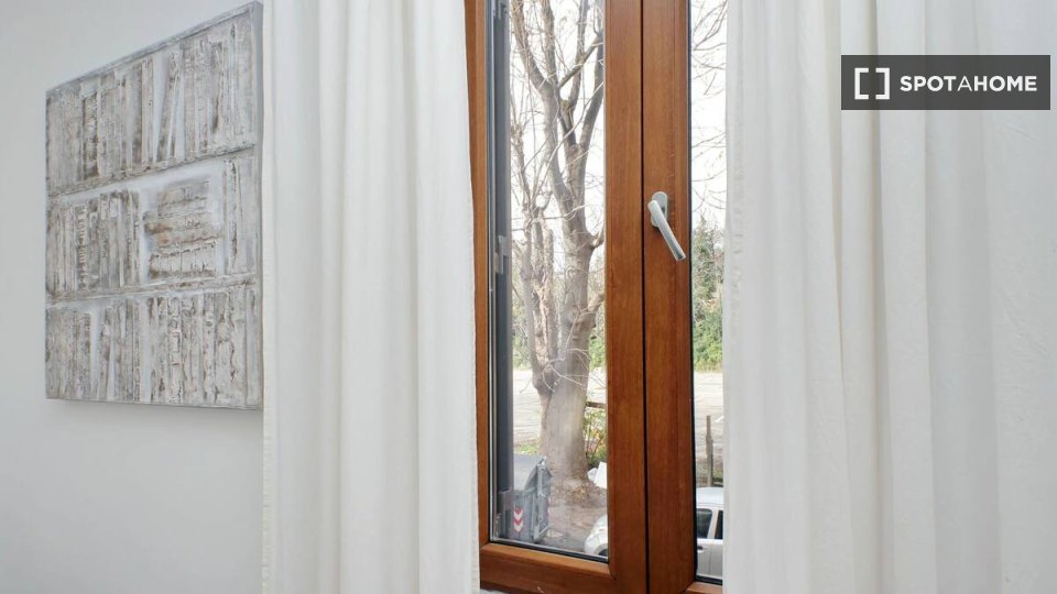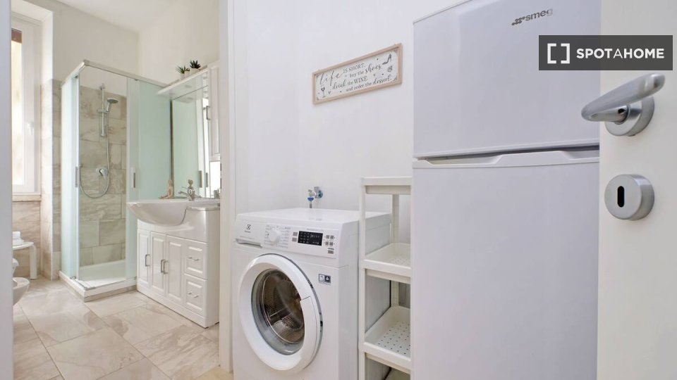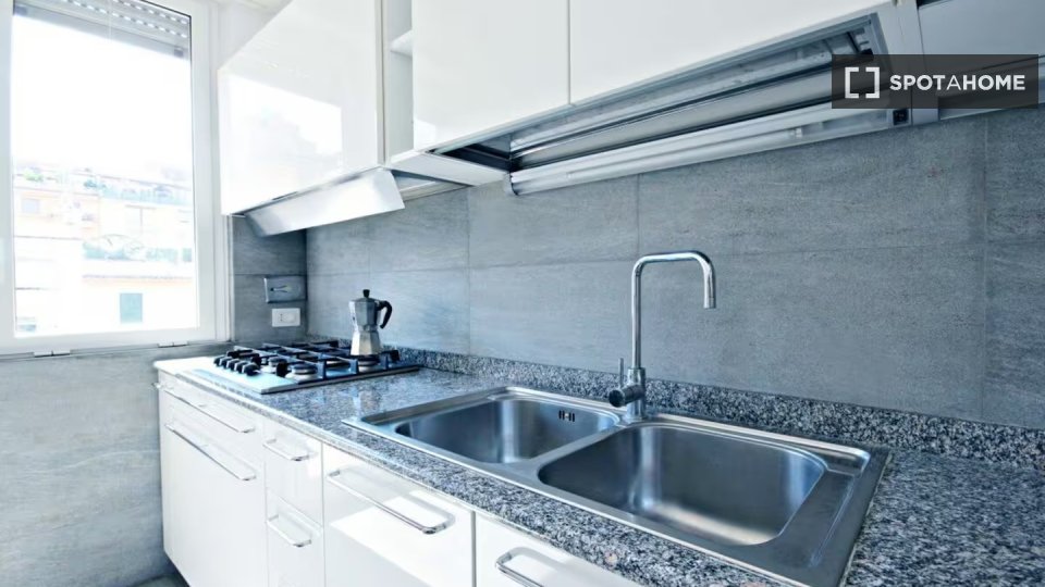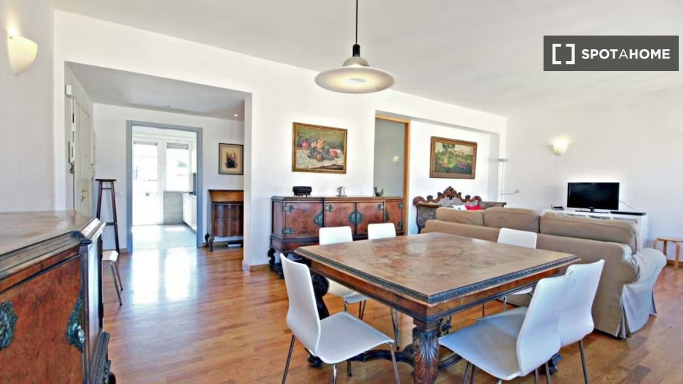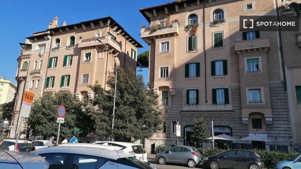 Questo appartamento con una camera da letto in affitto a Trieste, Roma, è splendidamente arredato e include una lavatrice privata, una TV e un impianto di riscaldamento a gas naturale. Sebbene il Wi-Fi sia incluso, servizi come balcone, accesso al...