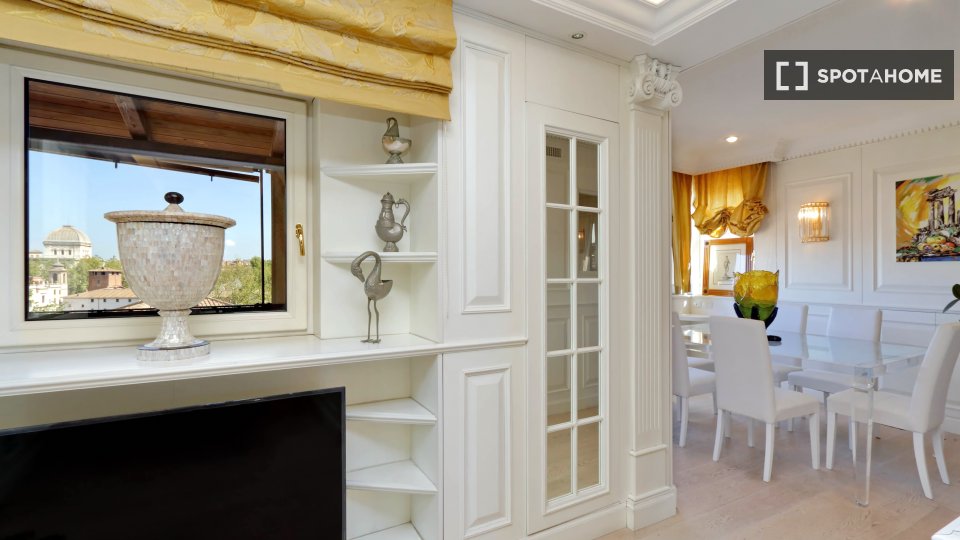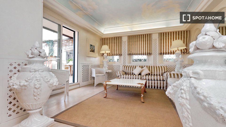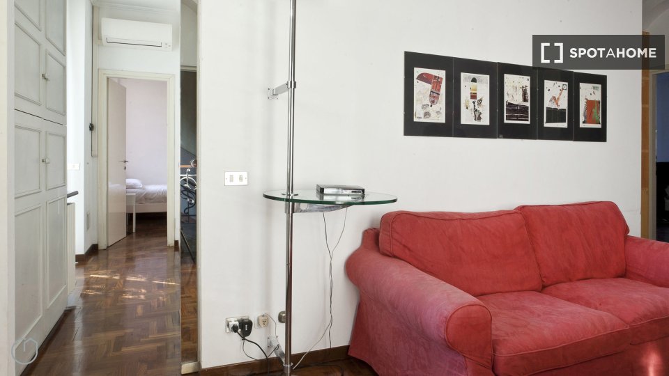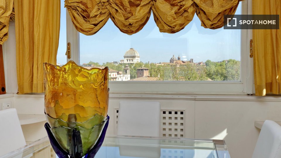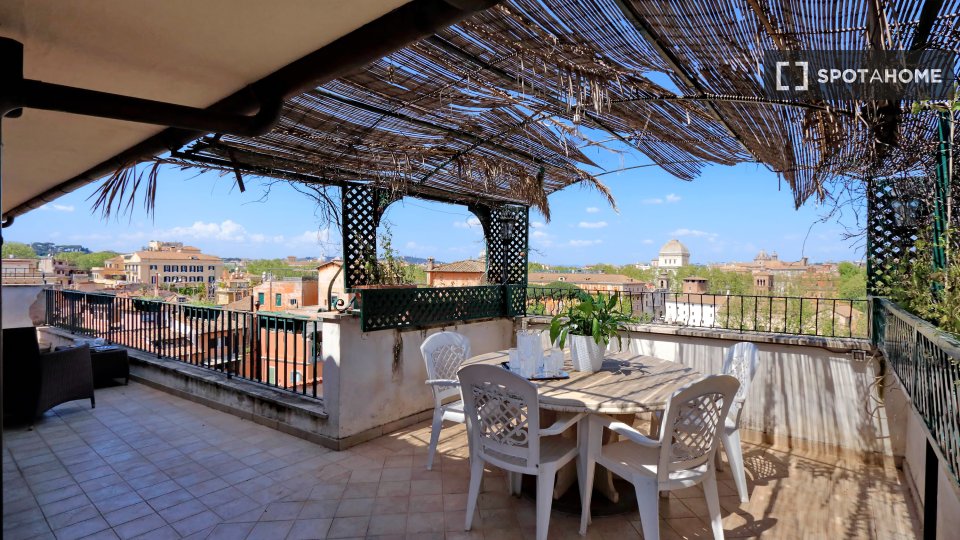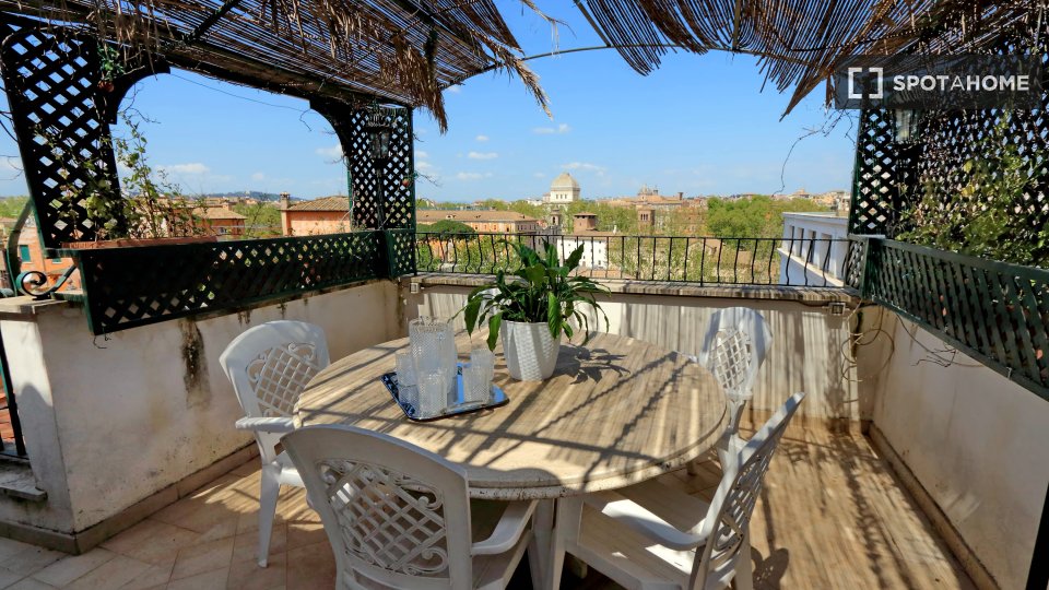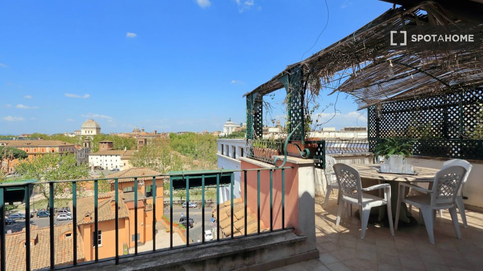 Esplora questo appartamento con 3 camere da letto in posizione centrale a Trastevere, Roma. L'appartamento è completamente arredato e dotato di aria condizionata, riscaldamento centralizzato e sistema di riscaldamento centralizzato dell'acqua. Dis...