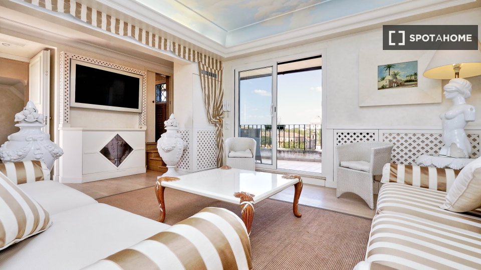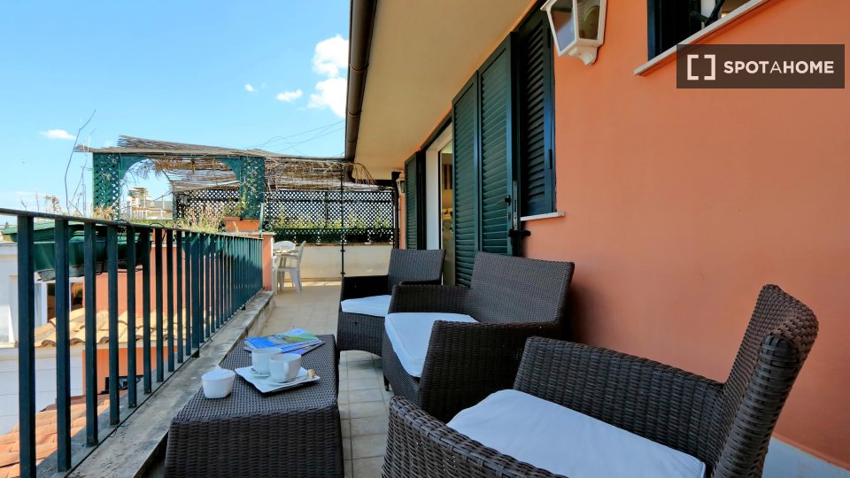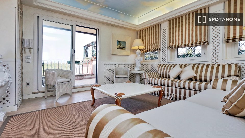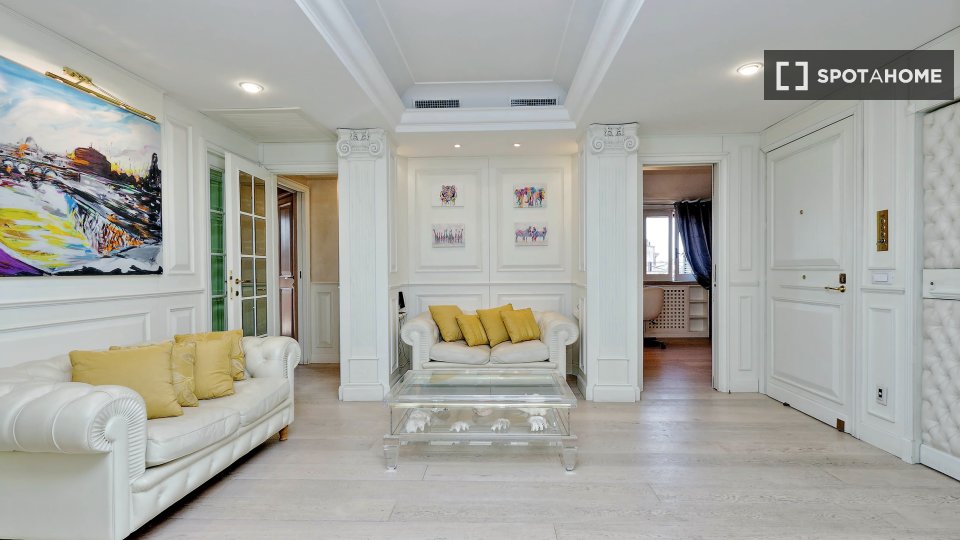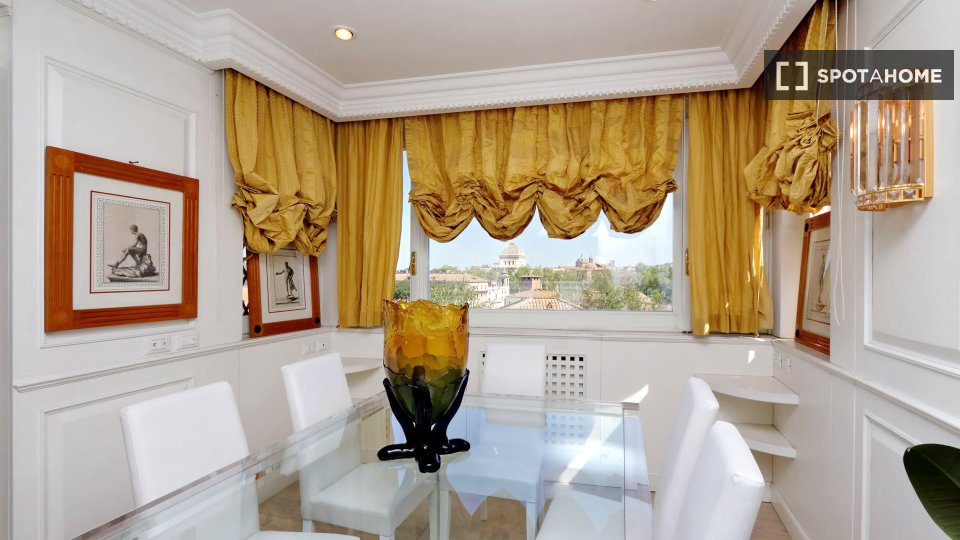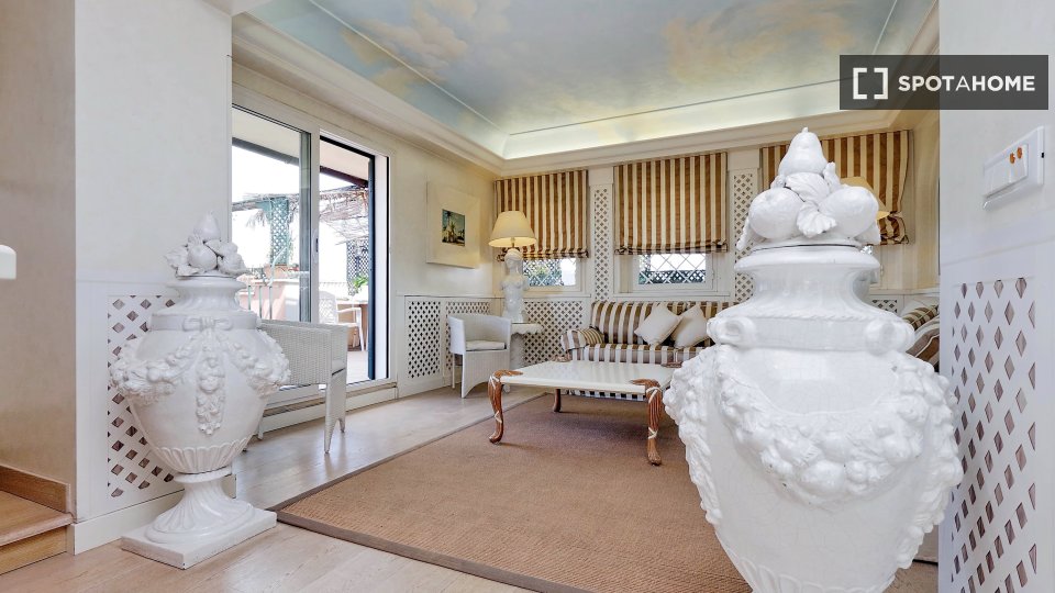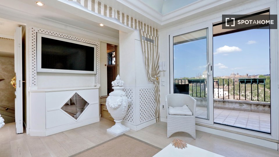 Esplora questo appartamento con 3 camere da letto in posizione centrale a Trastevere, Roma. L'appartamento è completamente arredato e dotato di aria condizionata, riscaldamento centralizzato e sistema di riscaldamento centralizzato dell'acqua. Dis...