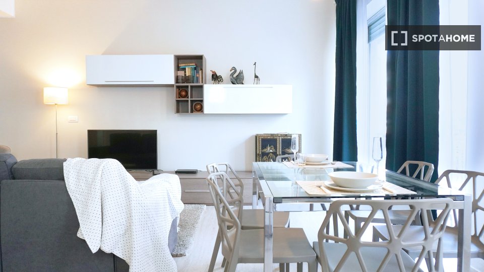 Questo moderno appartamento con una camera da letto completamente arredato è disponibile per l'affitto in Bicocca, Milano. L'immobile è dotato di comfort essenziali come cucina completamente attrezzata, lavastoviglie, forno e TV, e dispone di un s...