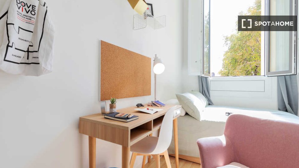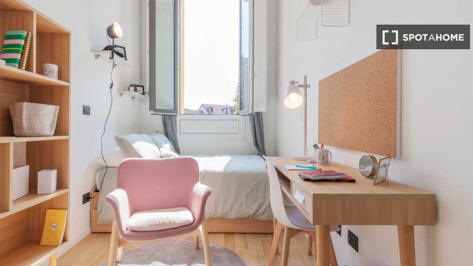 Benvenuti in questa camera ben arredata in un appartamento condiviso con 4 camere da letto situato nel quartiere Aurora di Torino. L'appartamento è arredato con gusto, dotato di aria condizionata centralizzata e lavatrice privata. La cucina è comp...