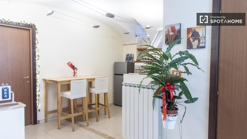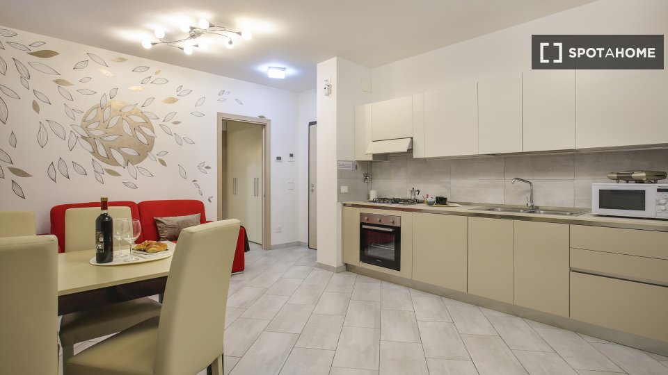 Benvenuti nella vostra nuova casa a Centocelle, Roma! Questo elegante appartamento con 2 camere da letto si affaccia sull'esterno ed è completamente arredato, dotato di aria condizionata individuale, lavastoviglie, forno e TV. La cucina attrezzata...