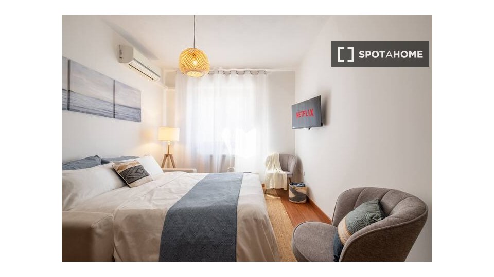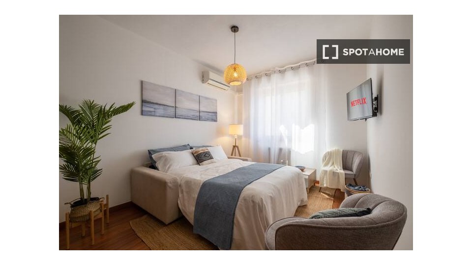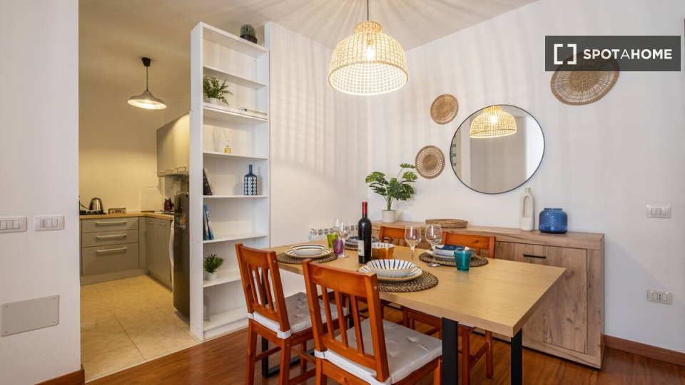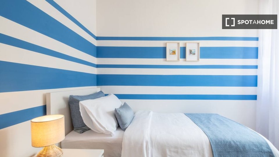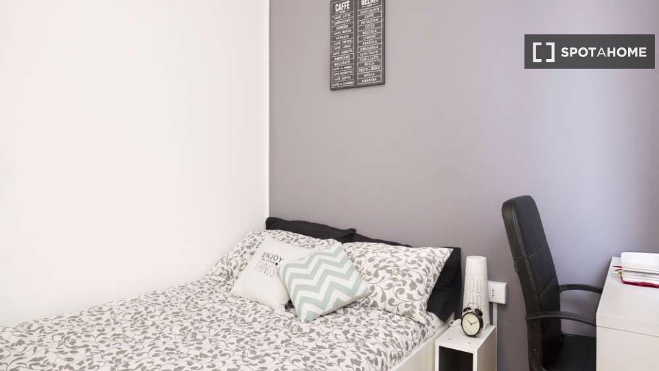 Benvenuti in questa stanza completamente arredata in un appartamento condiviso con 4 camere da letto a Giambellino, Milano. L'appartamento è dotato di una cucina ben attrezzata, completa di elettrodomestici essenziali come lavatrice e lavastovigli...