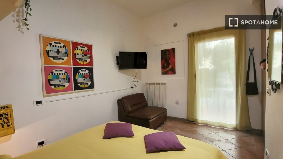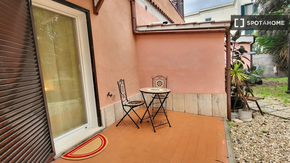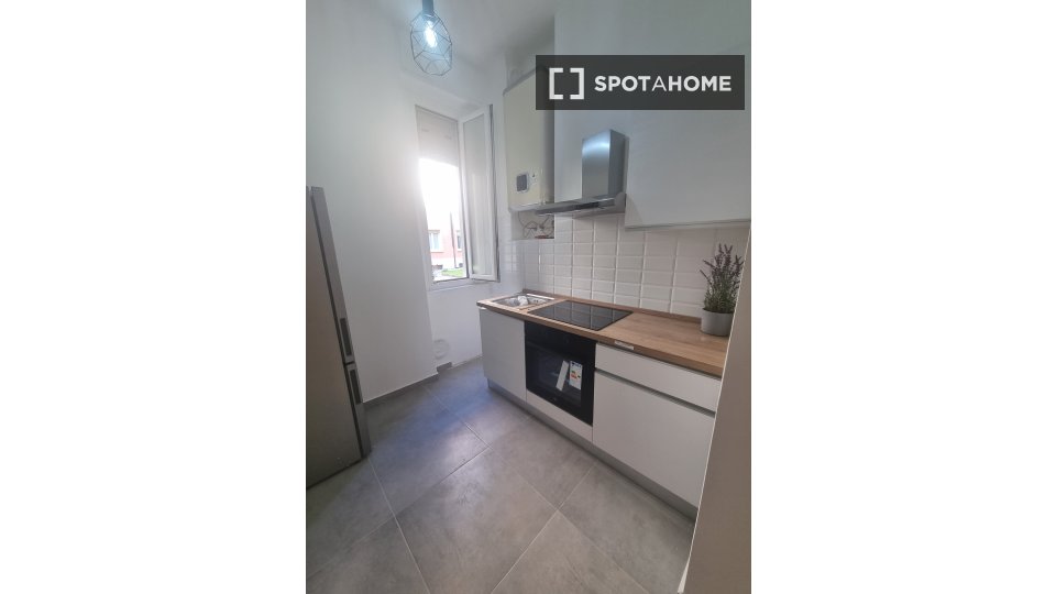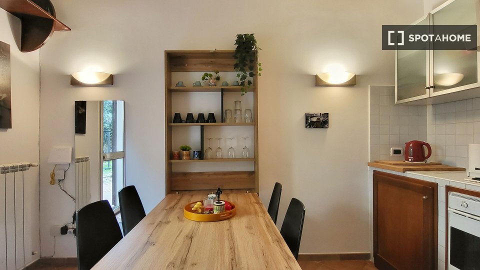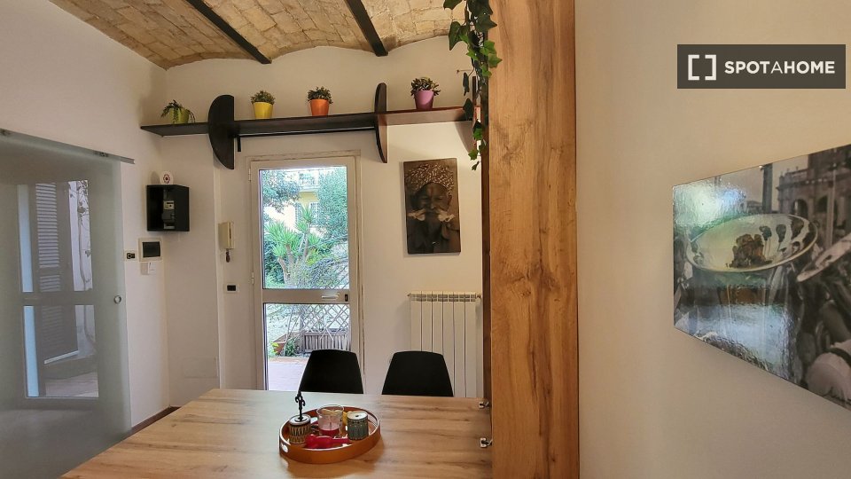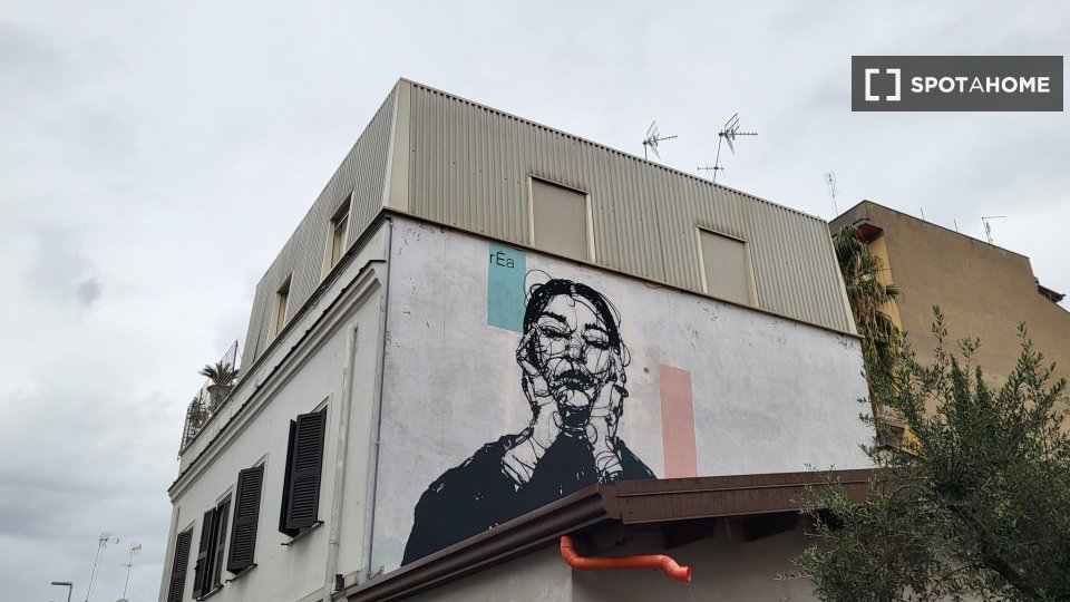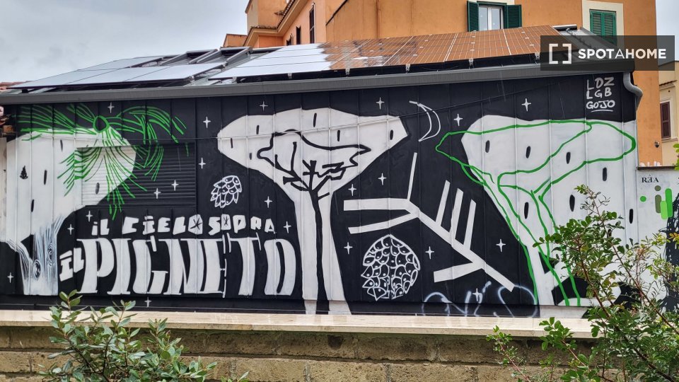 Questo elegante appartamento con una camera da letto, situato nel vivace quartiere Pigneto di Roma, è disponibile per l'affitto. Completamente arredato e dotato di comfort essenziali, questo appartamento con vista esterna include lavatrice, TV e a...