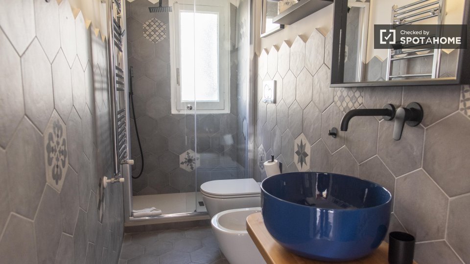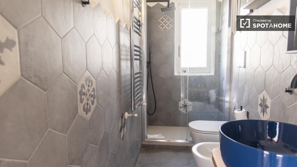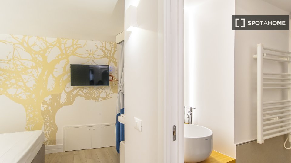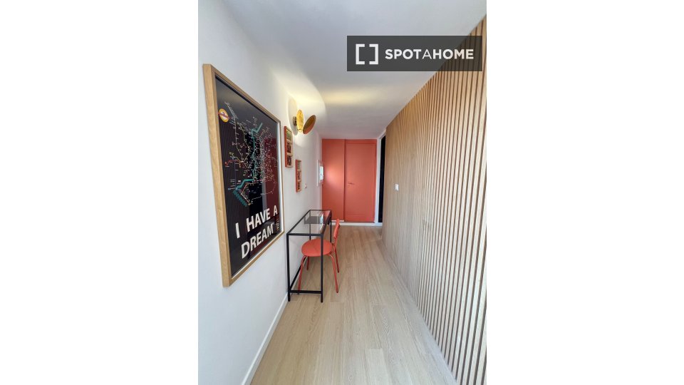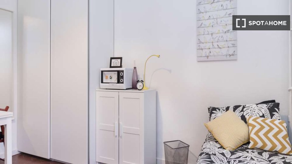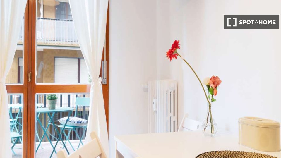 Questa confortevole camera in un appartamento condiviso con 3 camere da letto è perfetta per professionisti o studenti. L'appartamento è arredato e offre comfort come lavastoviglie, lavatrice, forno e TV. Dispone di un balcone per rilassarsi all'a...