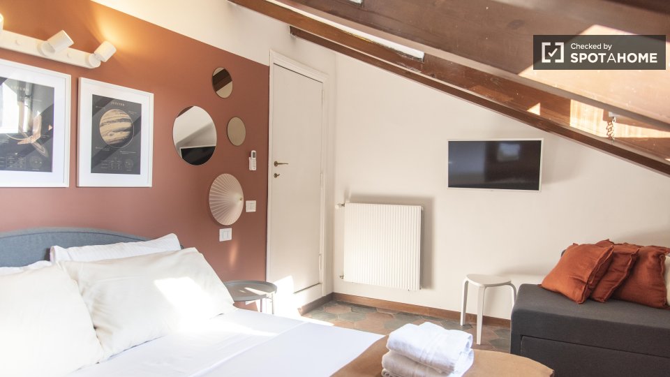 Appartamento arredato con 1 camera da letto in affitto in Via Fanfulla Da Lodi. L'immobile si trova al 1° piano di un edificio con ascensore. L'immobile comprende terrazza panoramica, vista sulla città e aria condizionata.