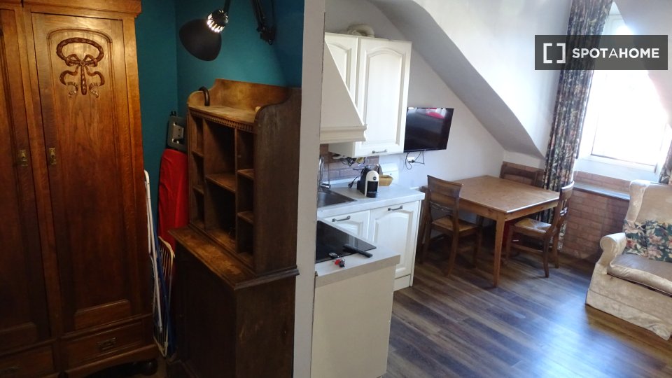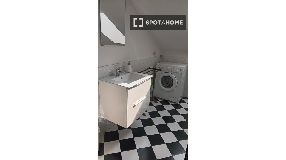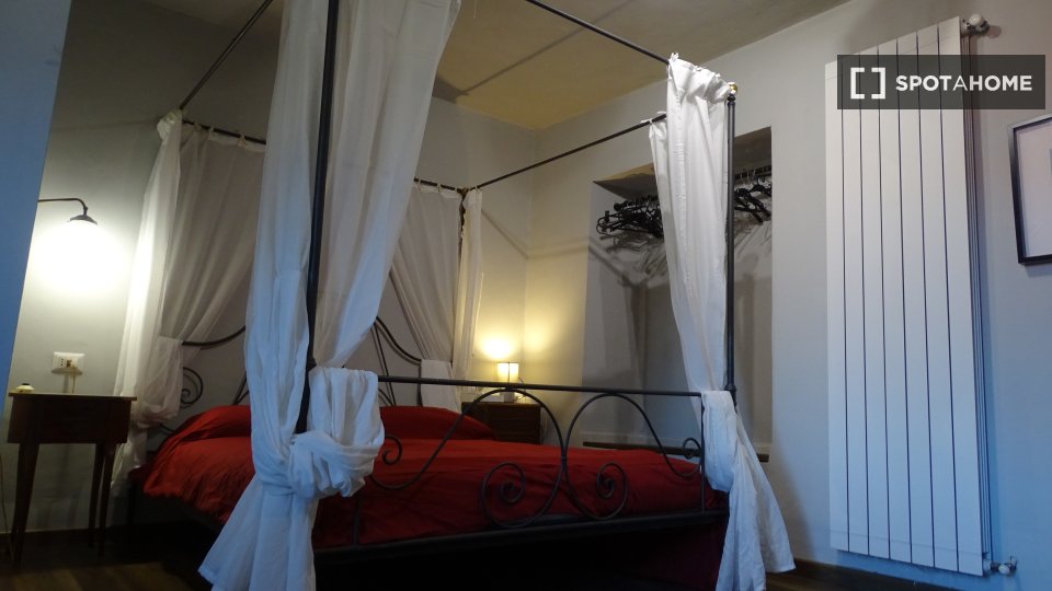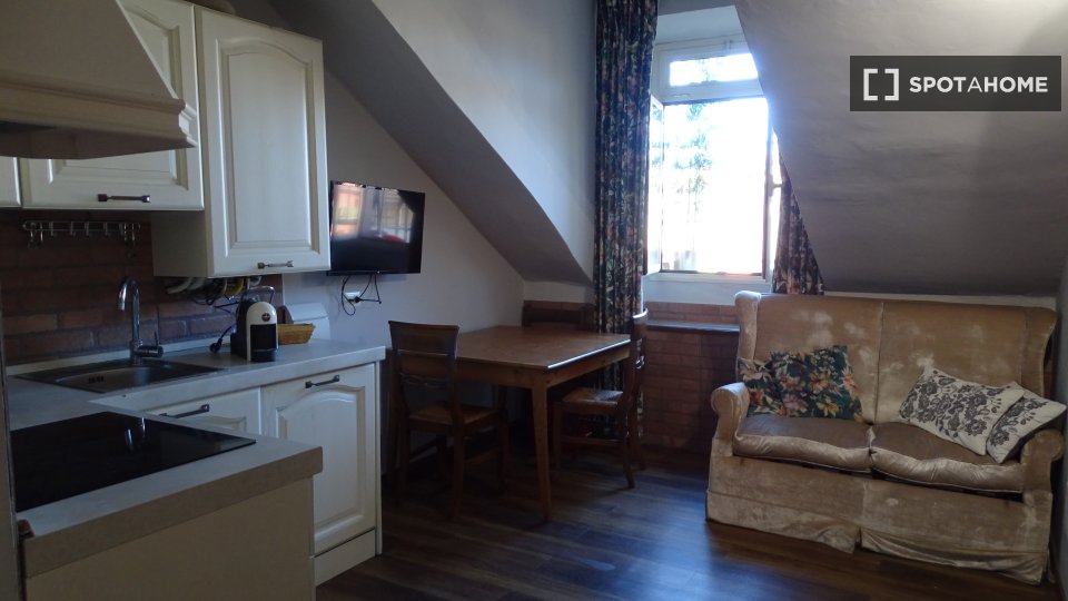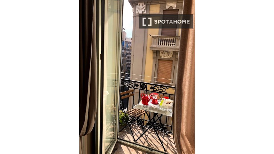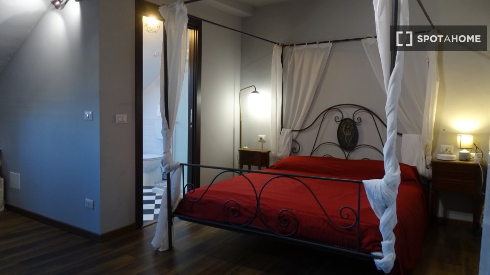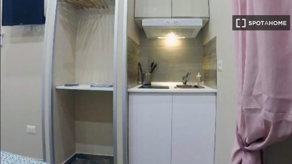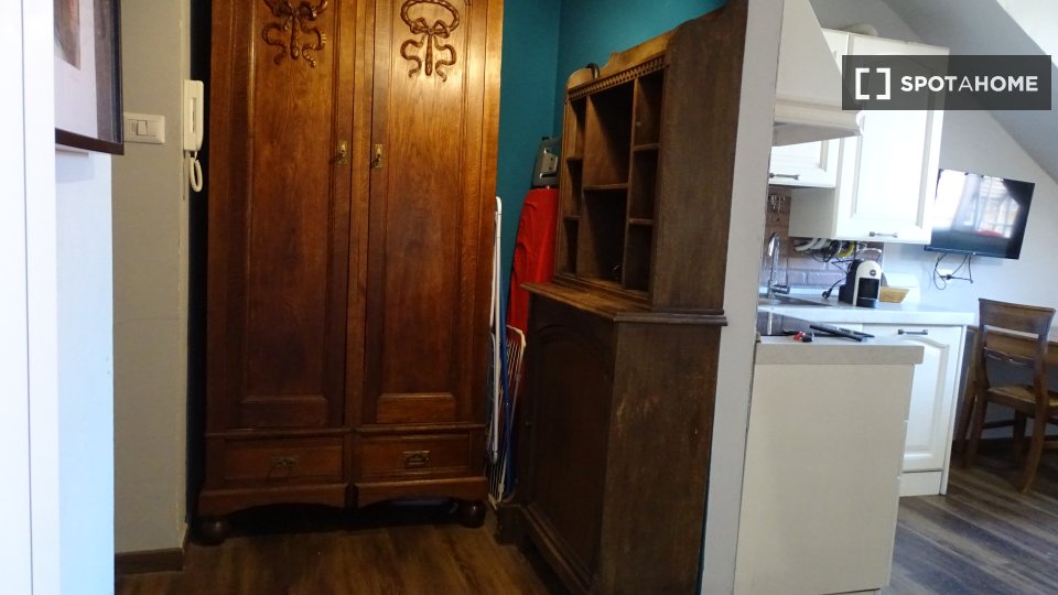 Monolocale con letto matrimoniale e balcone privato. Zona lavanderia nel corridoio fuori dalla stanza. Adatto per una persona, una coppia o due amici.