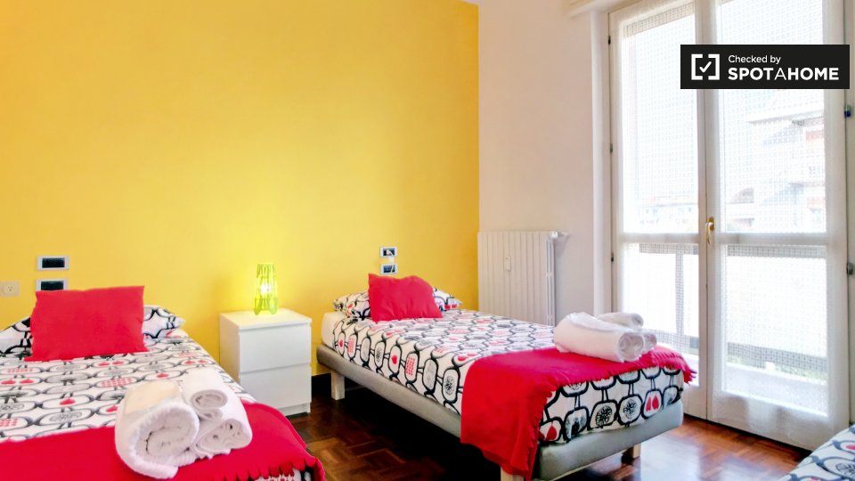 Questo è un bellissimo appartamento con 2 camere da letto a circa 40 minuti dal centro di Milano. La struttura dispone di 5 posti letto in totale (tutti singoli), e un ampio soggiorno, cucina e bagno. C'è spazio di archiviazione nel corridoio con...