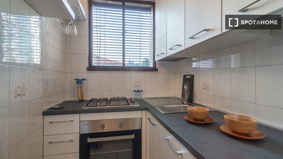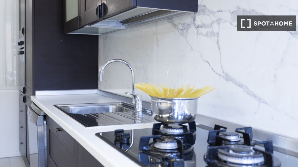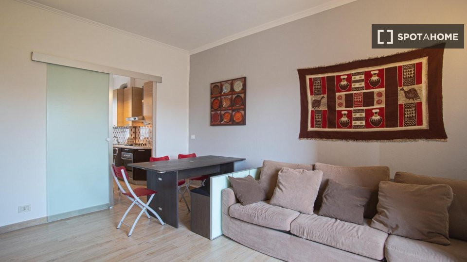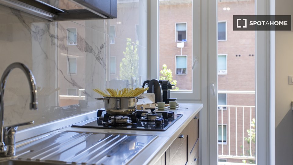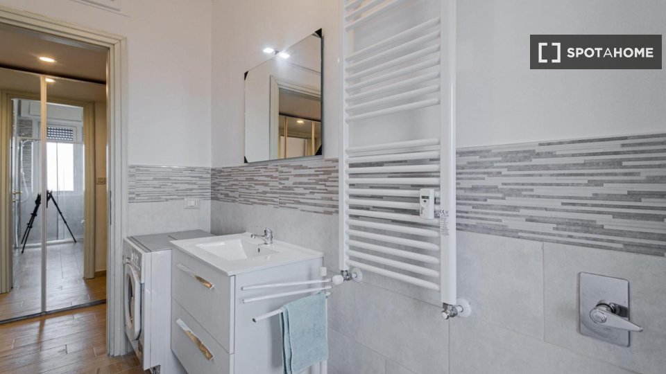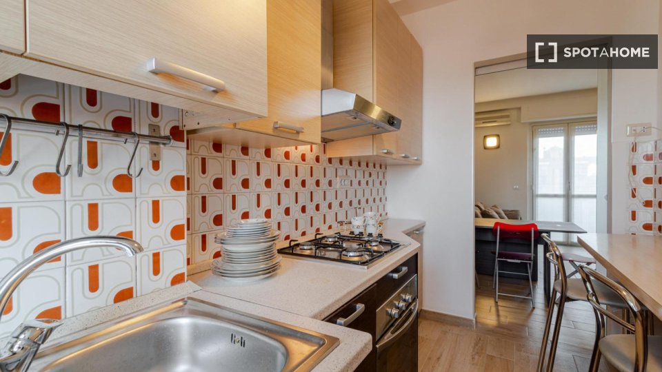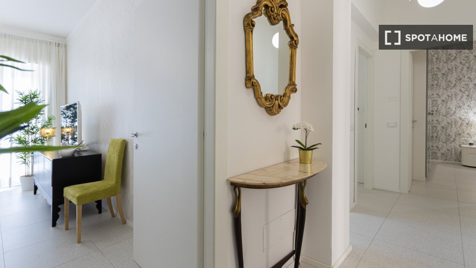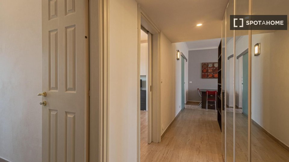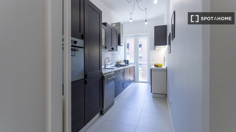 Camere in affitto in un appartamento arredato con 2 camere da letto in Via Delle Forze Armate. La proprietà comprende cucina attrezzata, asciugatrice e lavatrice.