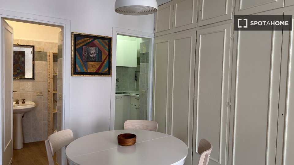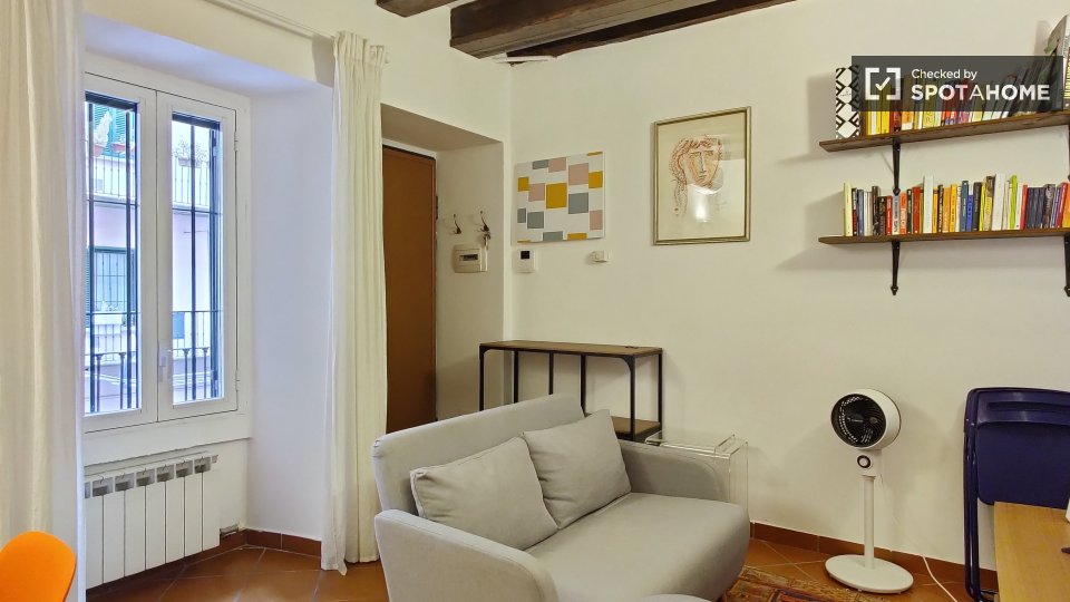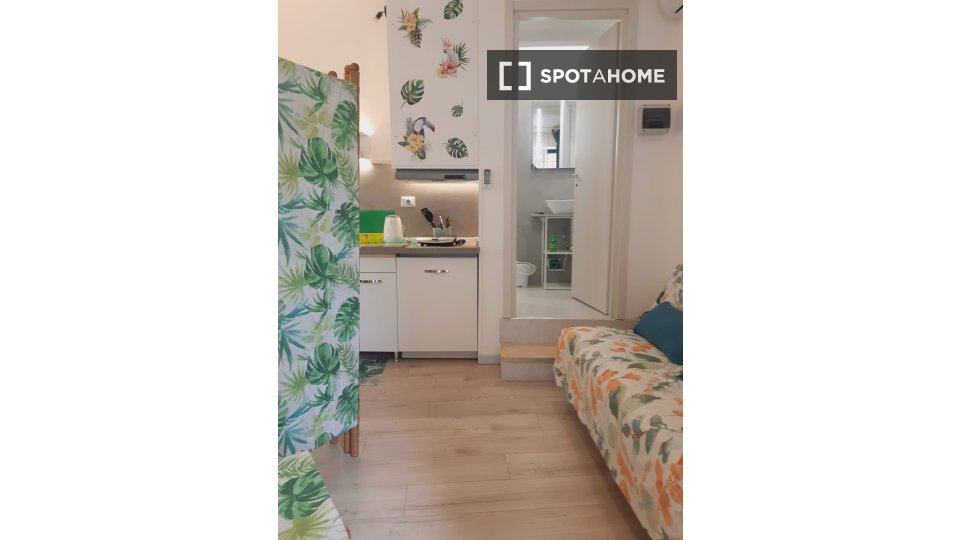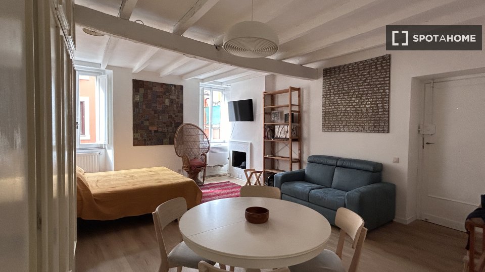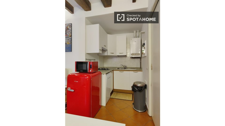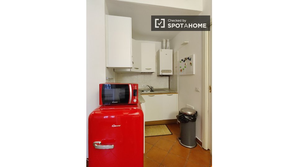 Questo accogliente monolocale nel Rione Monti di Roma è completamente arredato e attrezzato, offrendo uno spazio abitativo ideale per single o coppie. La cucina è dotata di elettrodomestici essenziali, tra cui un forno, per garantire la massima pr...