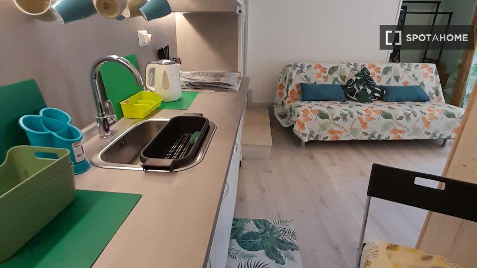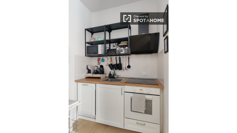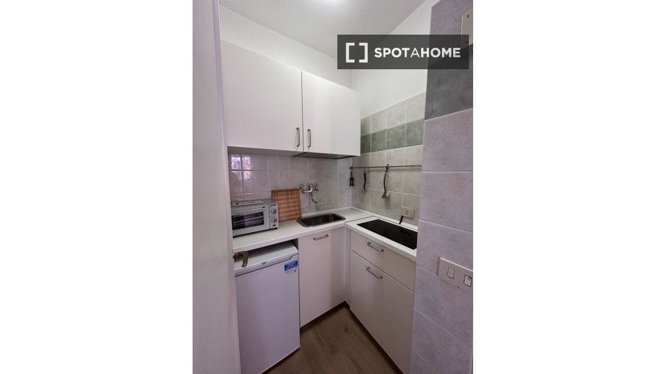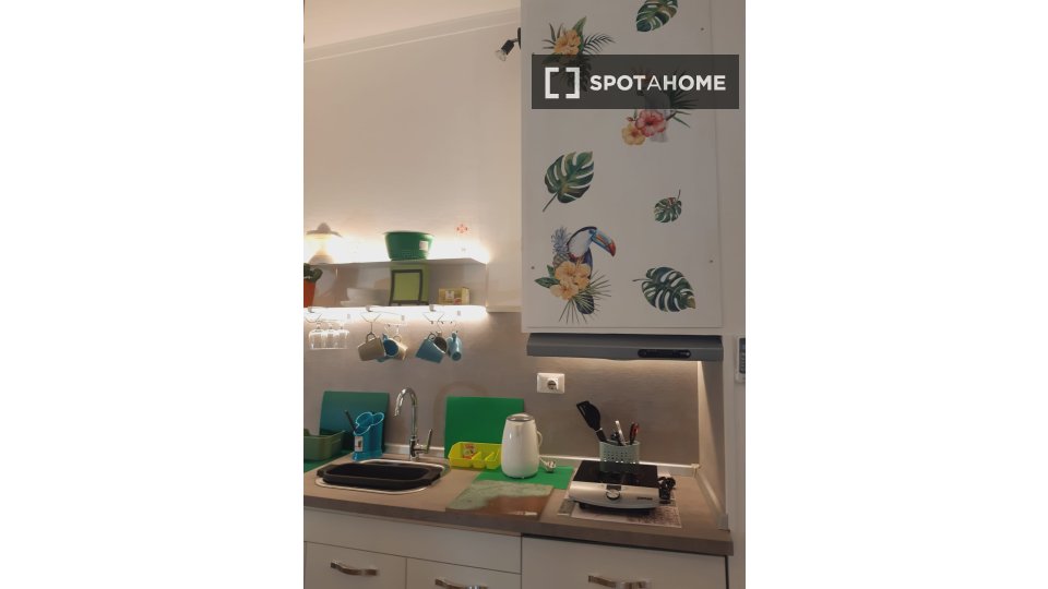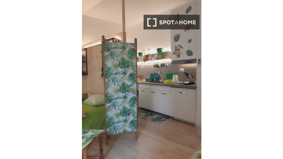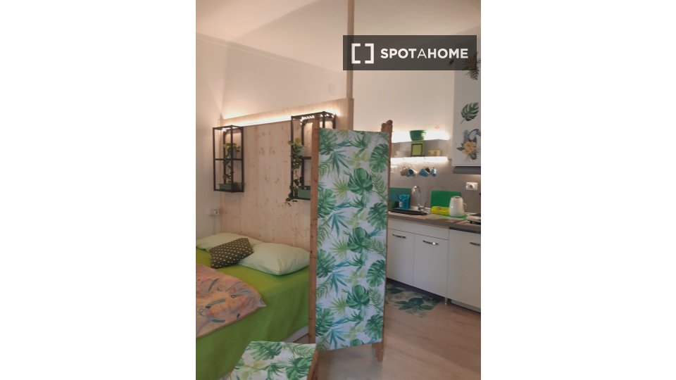 Questo accogliente monolocale nel Rione Monti di Roma è completamente arredato e attrezzato, offrendo uno spazio abitativo ideale per single o coppie. La cucina è dotata di elettrodomestici essenziali, tra cui un forno, per garantire la massima pr...