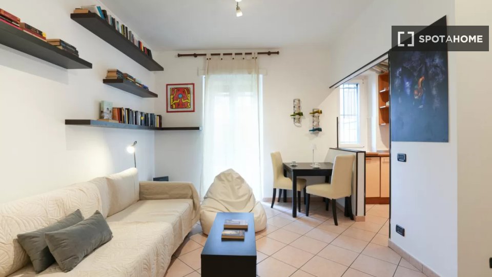 Scopri questo monolocale arredato disponibile per l'affitto nell'incantevole quartiere romano di Trastevere. L'immobile è dotato di cucina completamente attrezzata, lavatrice e lavastoviglie, rendendolo ideale per un soggiorno confortevole. Si pre...