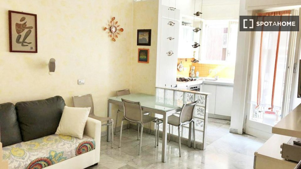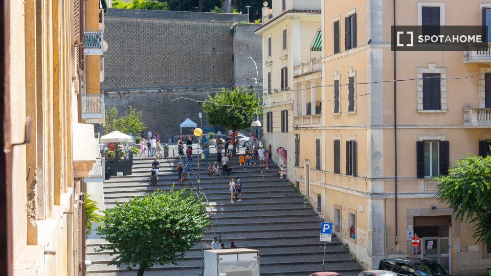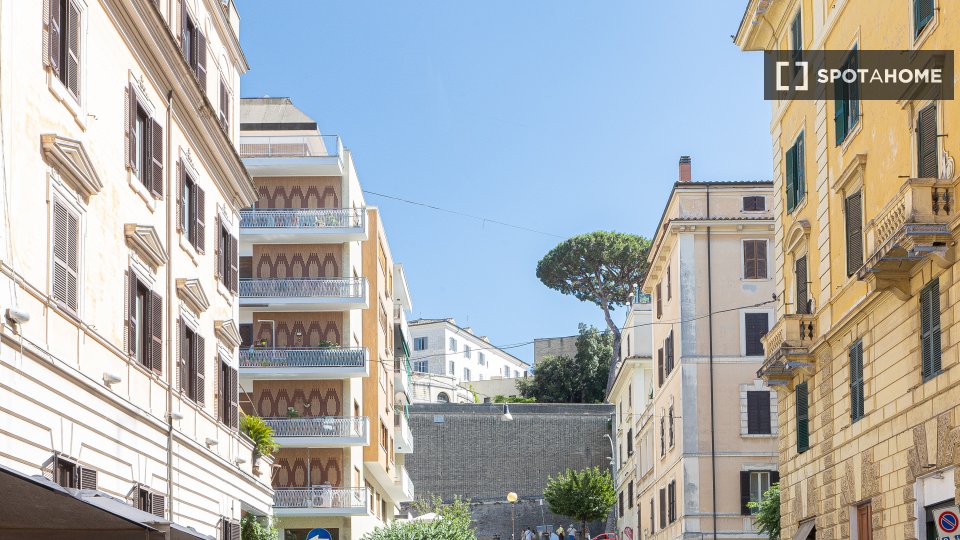 Scopri questo grazioso appartamento con 2 camere da letto disponibile per l'affitto nel cuore del Quartiere Trionfale, a Roma. Questa proprietà completamente arredata offre comfort moderni, tra cui aria condizionata individuale, TV, cucina attrezz...