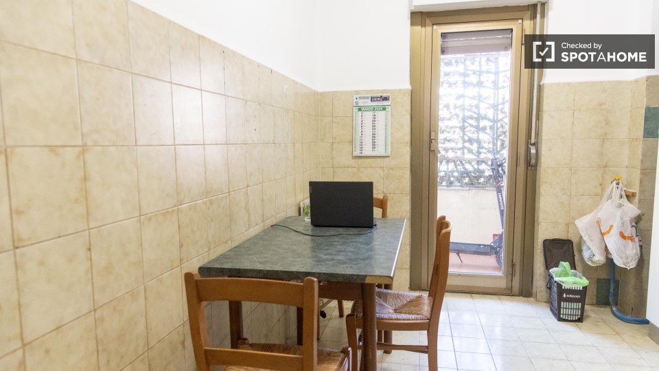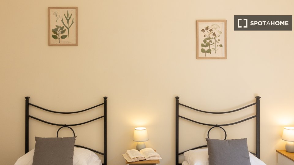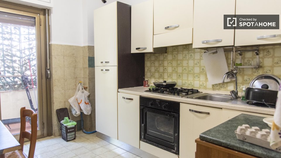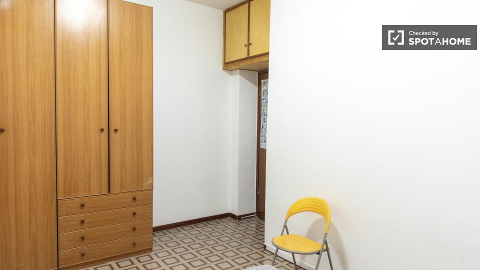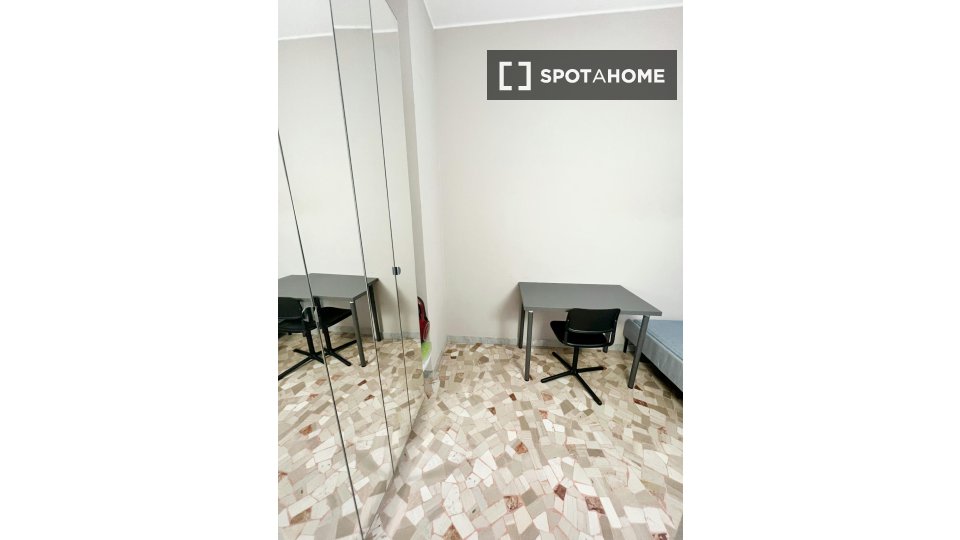 Stanze in affitto in appartamento ammobiliato con 3 camere da letto in Via Monte Gran Paradiso. L'immobile si trova al 2° piano di un edificio dotato di ascensore. Completano la proprietà cucina attrezzata, balcone, asciugatrice e lavatrice.