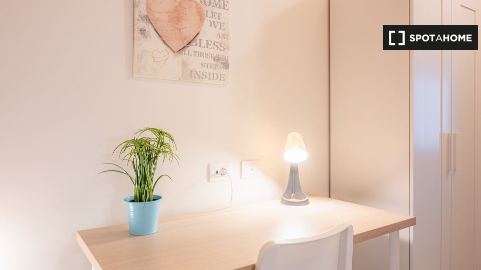 Questa stanza in un appartamento condiviso con 8 camere da letto nel vivace quartiere Maciachini-Maggiolina è disponibile esclusivamente per inquiline donne. L'immobile è completamente arredato e offre servizi di qualità, come una lavanderia priva...
