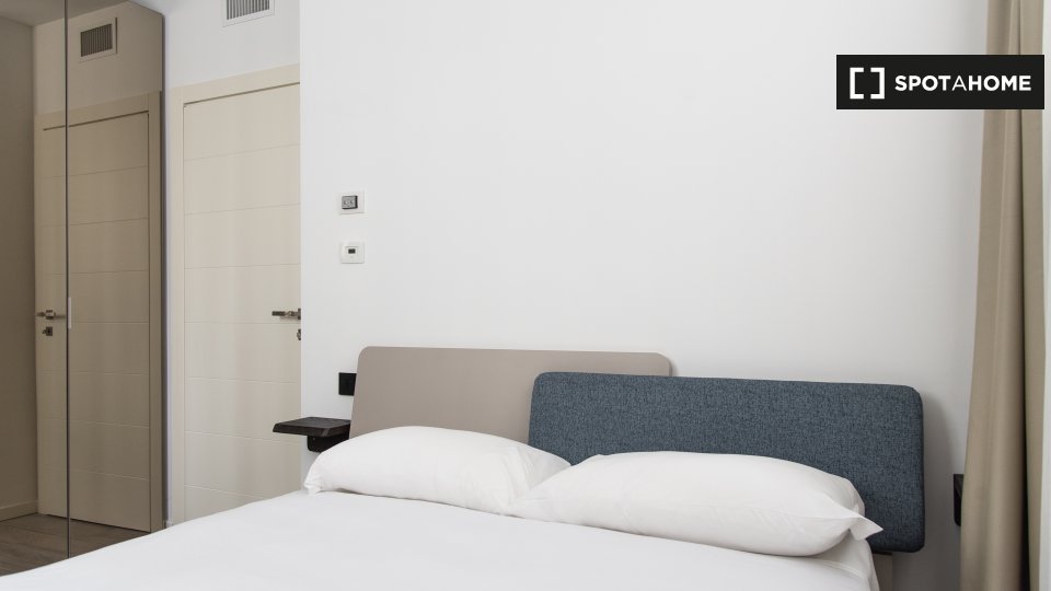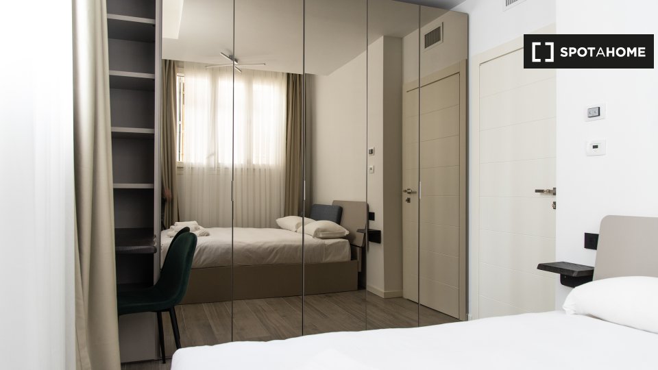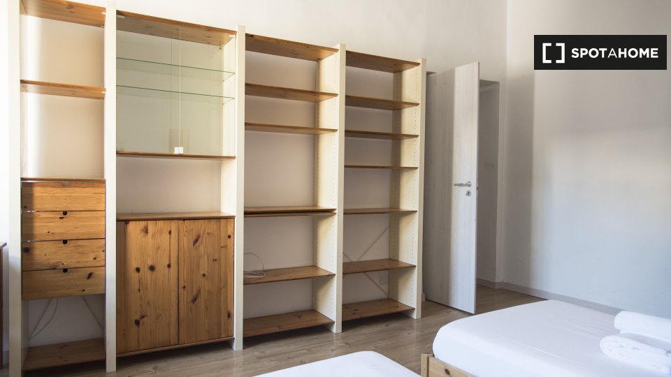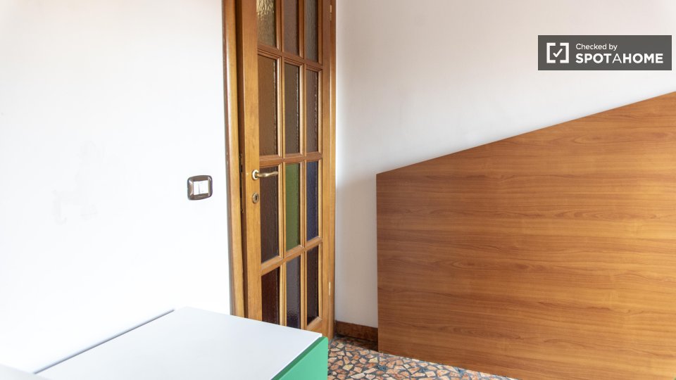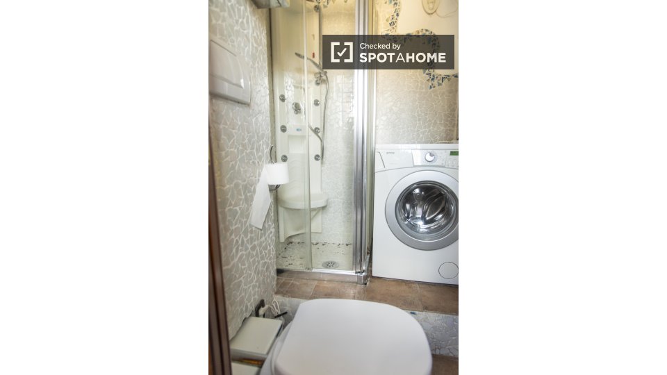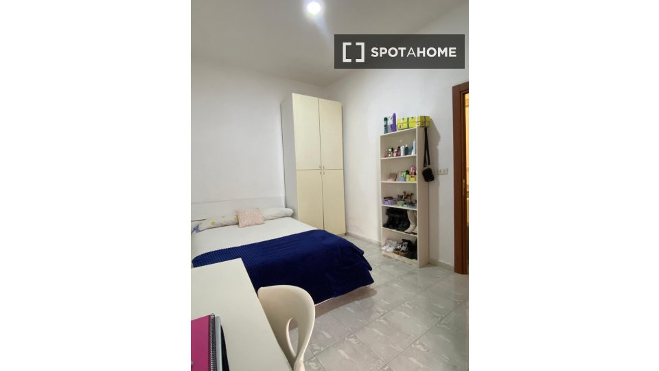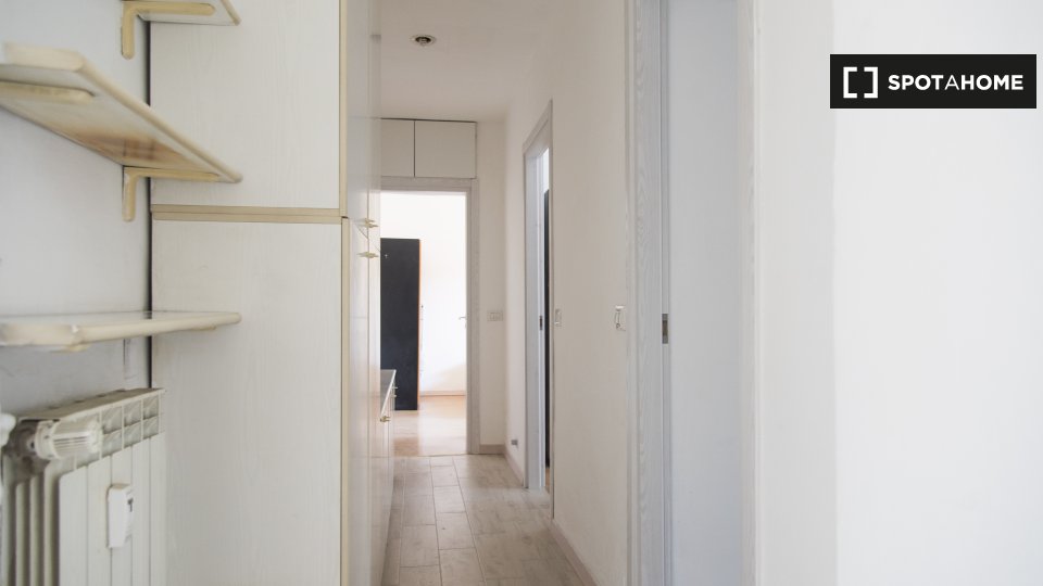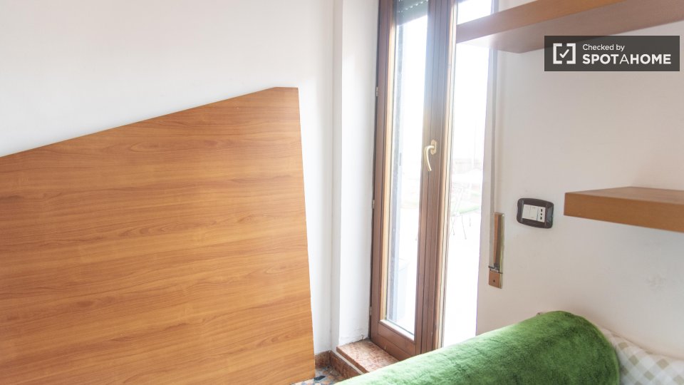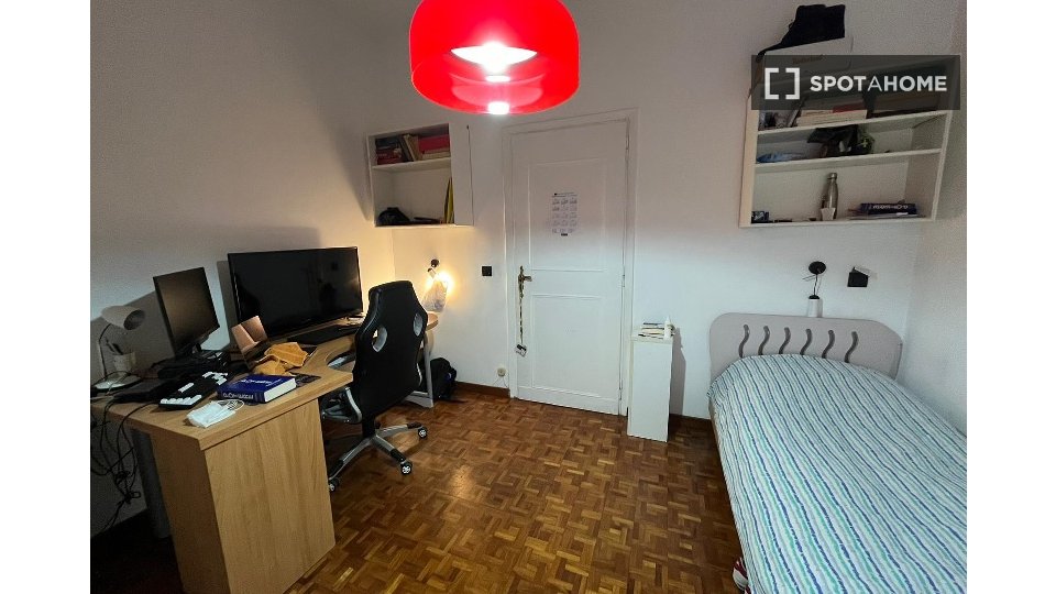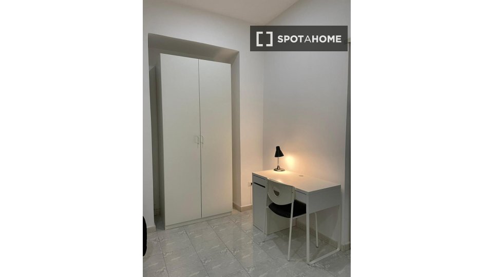 Questa camera in un appartamento condiviso con 3 camere da letto offre un'esperienza abitativa confortevole e ben arredata. L'appartamento è dotato di aria condizionata individuale e di un balcone per una maggiore comodità. La cucina attrezzata è ...