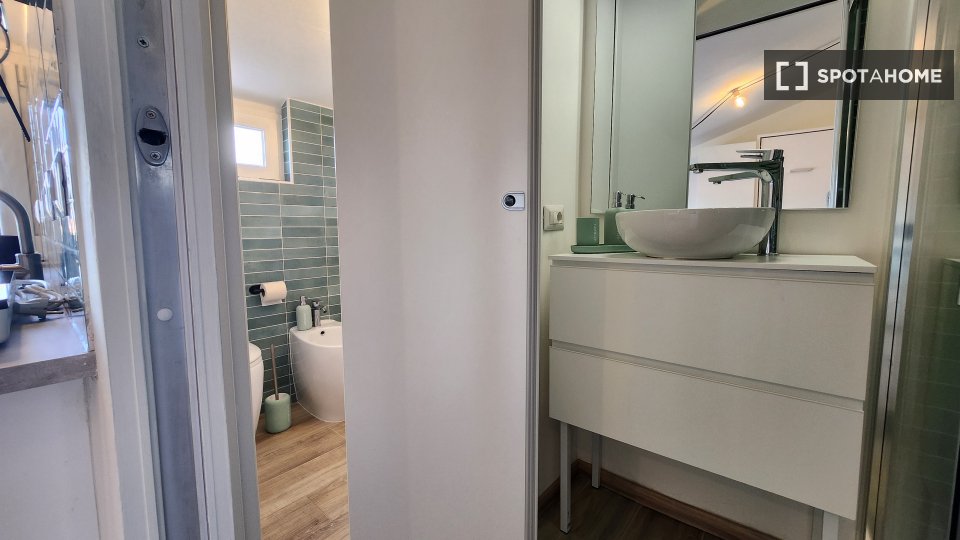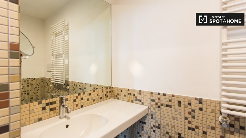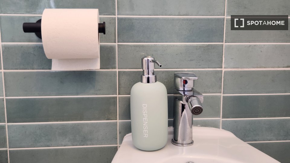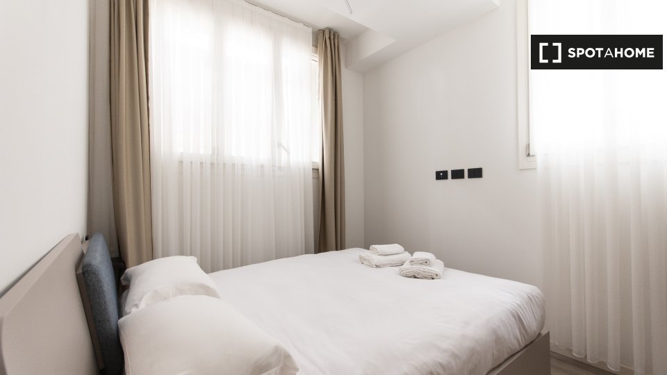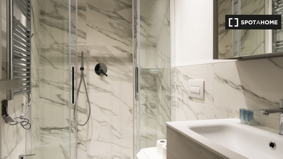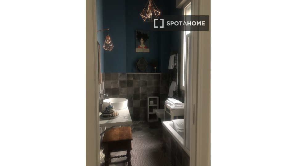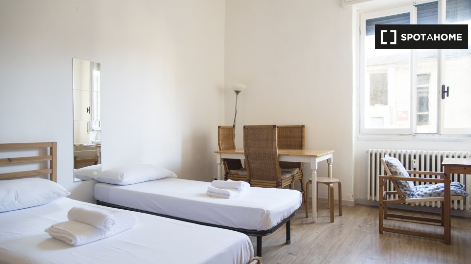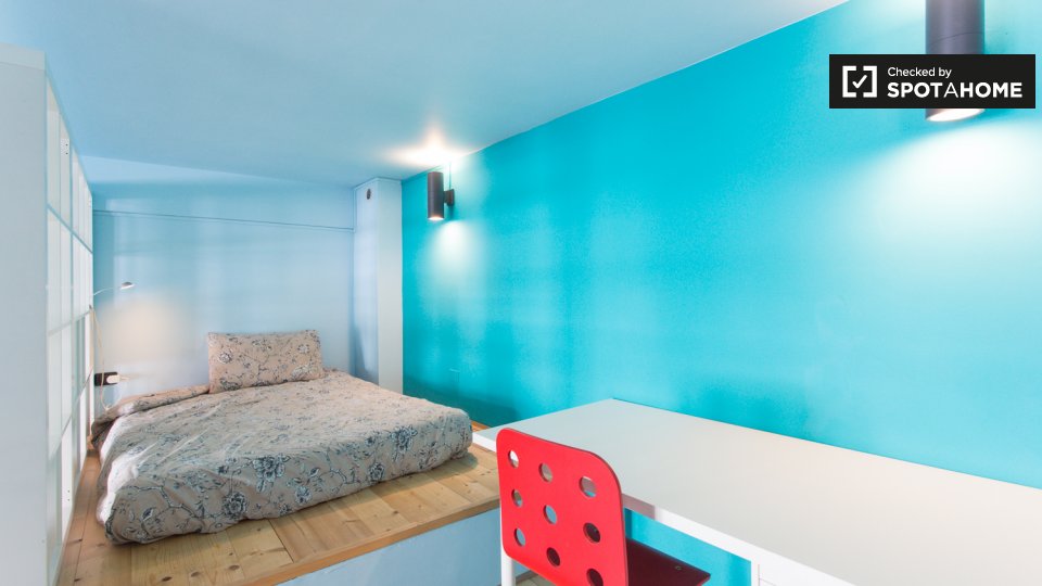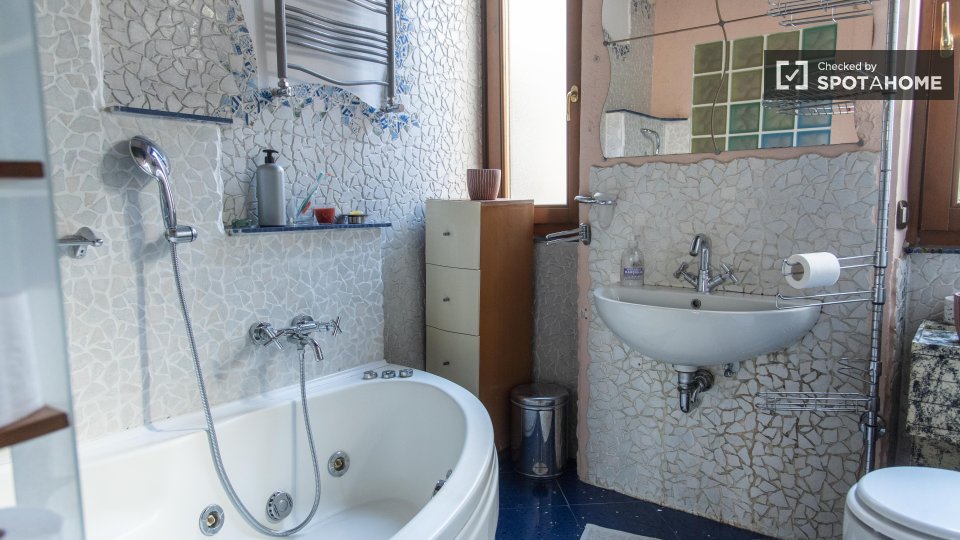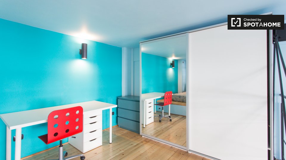 Questa camera in un appartamento condiviso con 3 camere da letto offre un'esperienza abitativa confortevole e ben arredata. L'appartamento è dotato di aria condizionata individuale e di un balcone per una maggiore comodità. La cucina attrezzata è ...