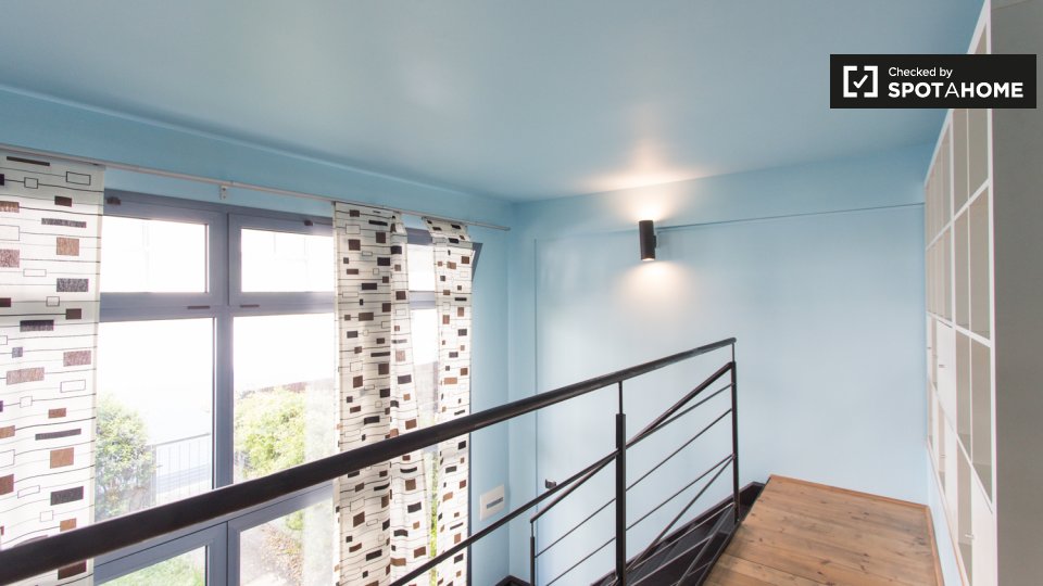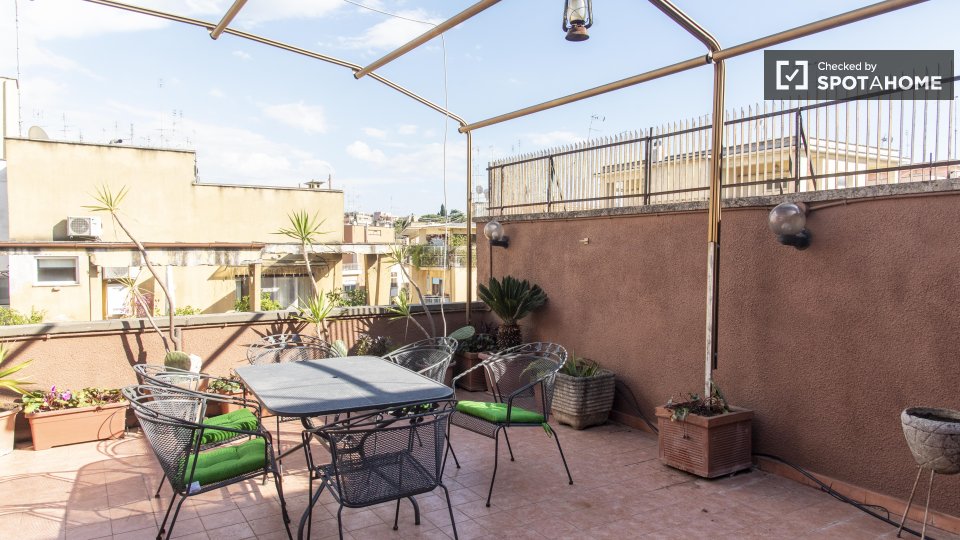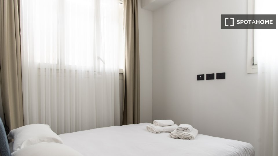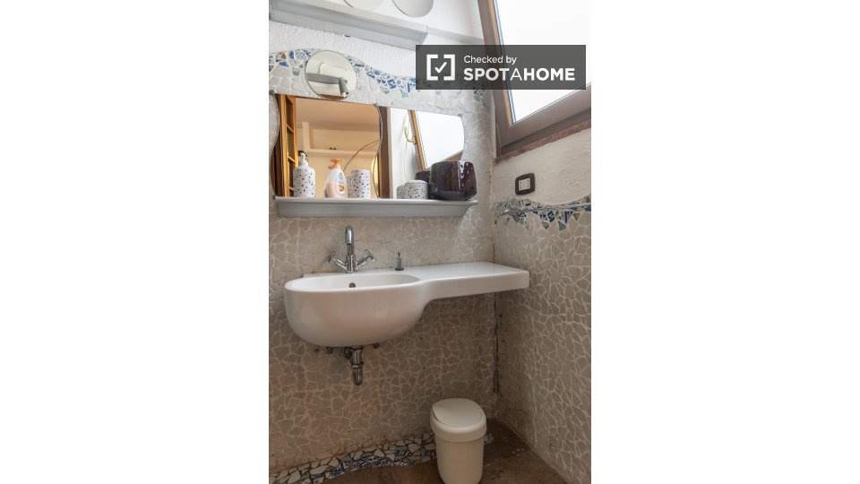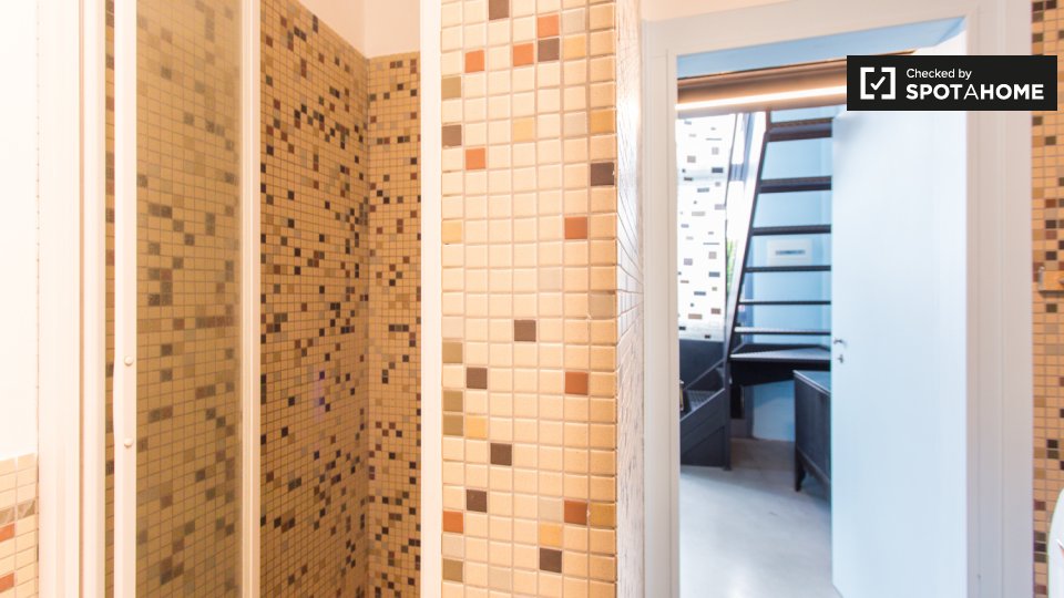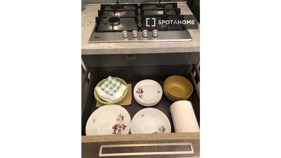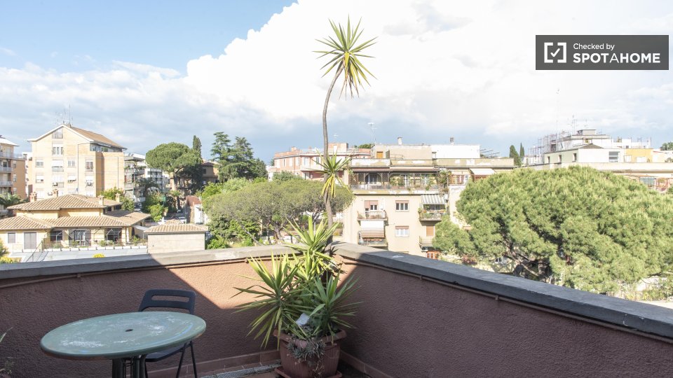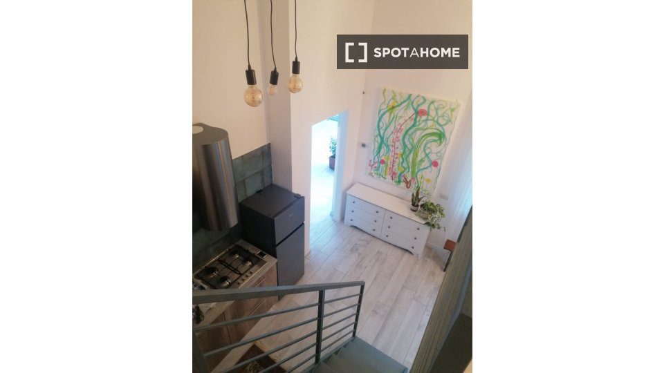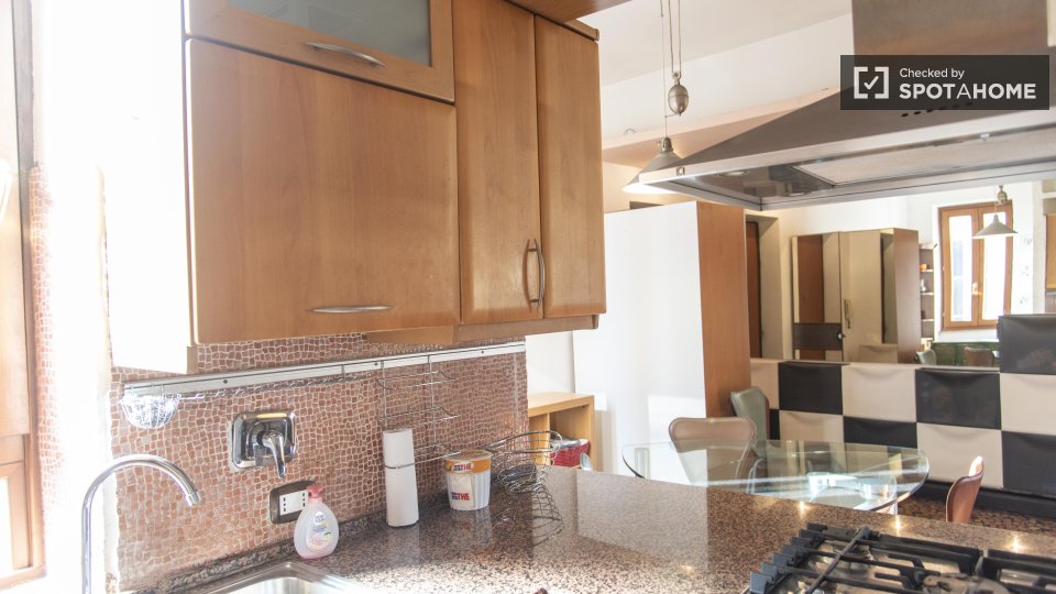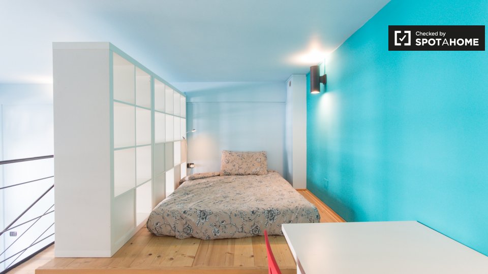 Questa camera in un appartamento condiviso con 3 camere da letto offre un'esperienza abitativa confortevole e ben arredata. L'appartamento è dotato di aria condizionata individuale e di un balcone per una maggiore comodità. La cucina attrezzata è ...