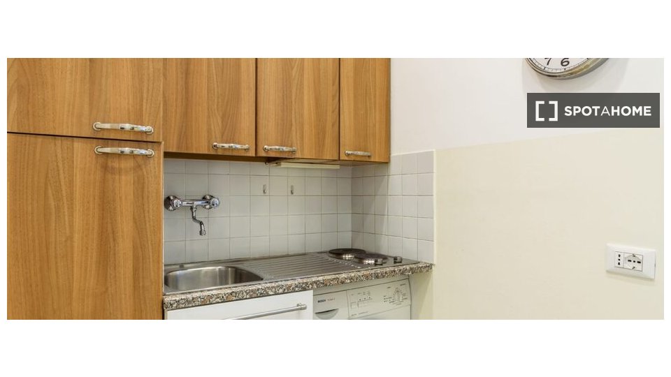 Si tratta di un appartamento dotato di un letto singolo e di un bagno completamente rinnovato dotato di un'ampia e comoda doccia doppia e di uno scaldabagno individuale. E' dotato di un angolo cottura completamente rinnovato e completo di frigori...