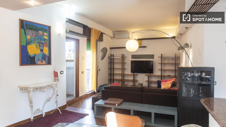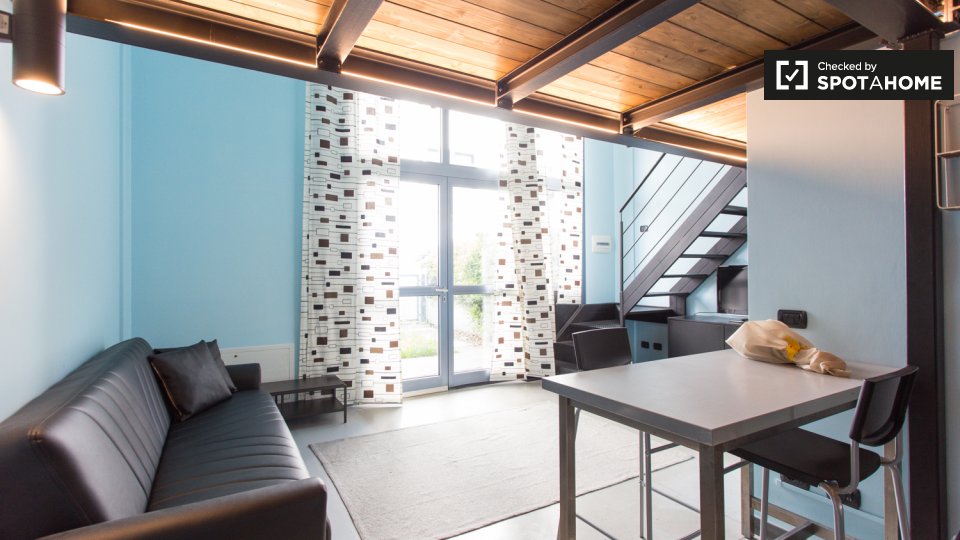 Questo monolocale, situato a San Cristoforo, Milano, è un'ottima scelta per la vita in città. Questo monolocale è completamente attrezzato, con lavatrice, lavastoviglie, forno e TV privati, per offrire comodità e comfort. Ulteriori servizi includo...