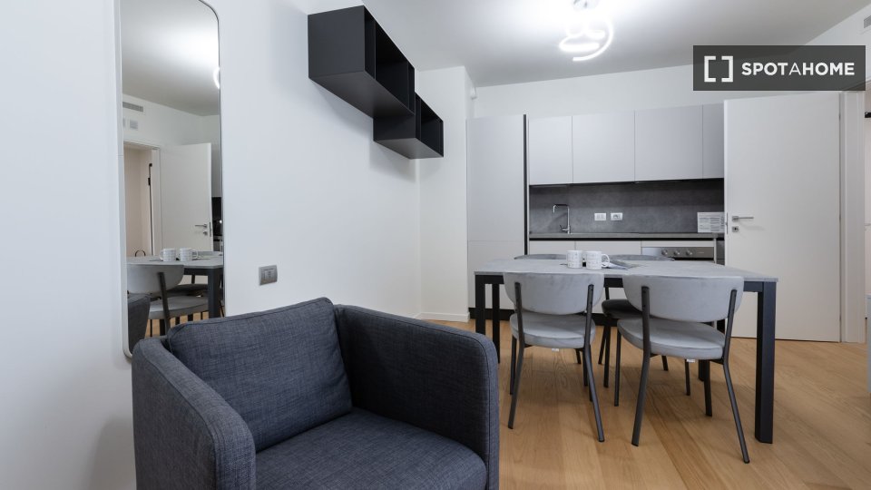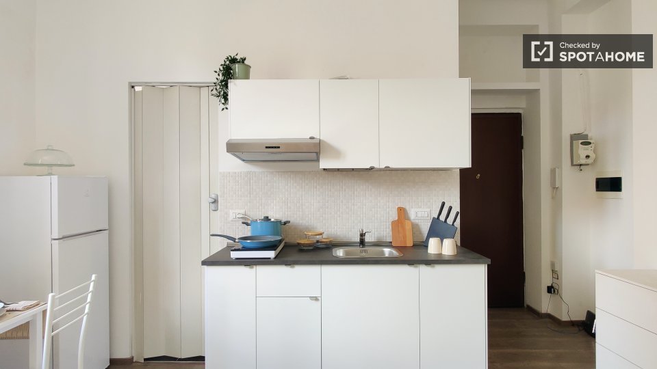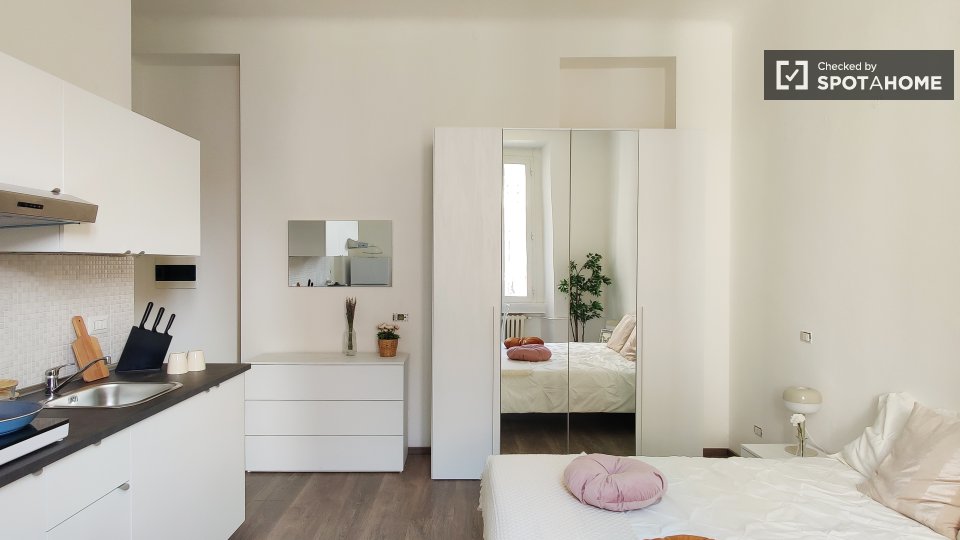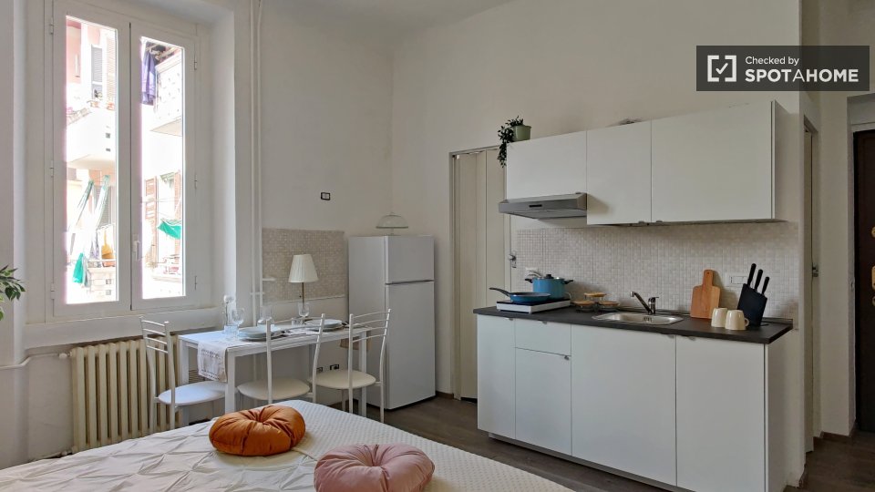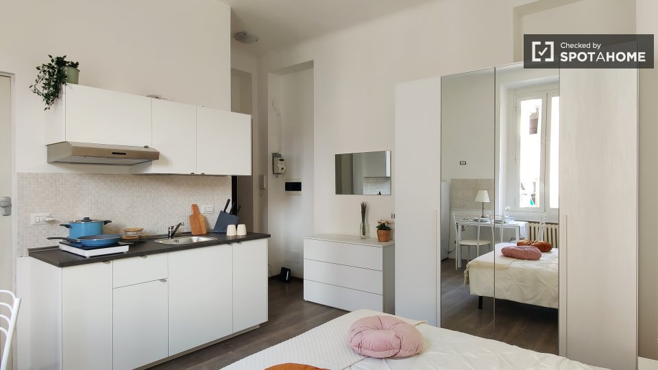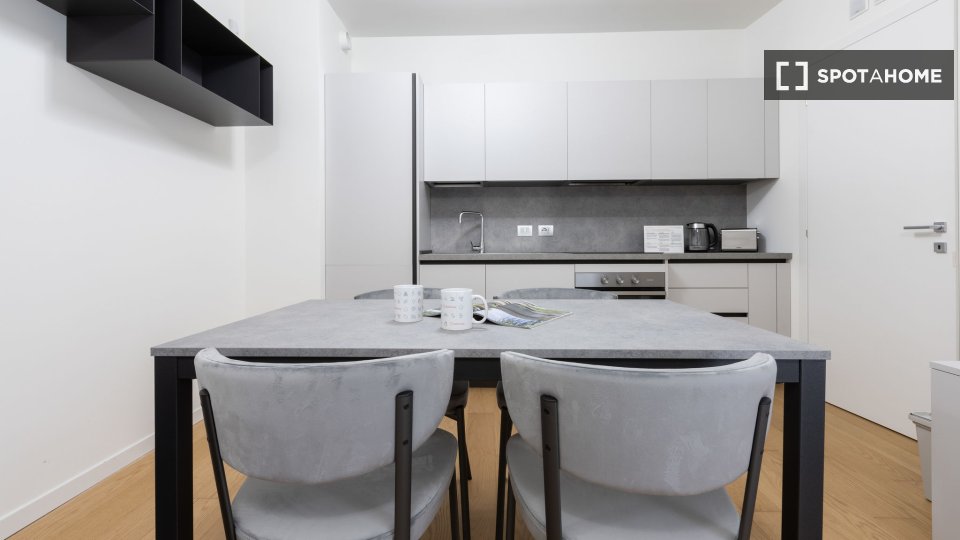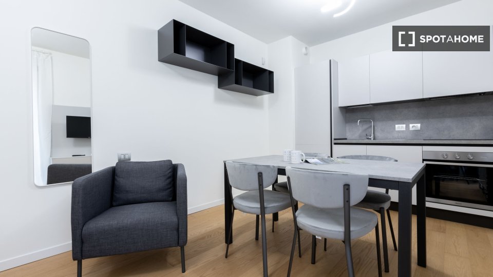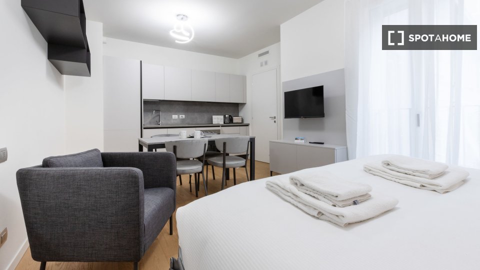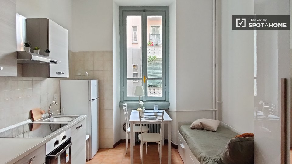 Questo monolocale completamente arredato a Isola, Milano, dispone di aria condizionata centralizzata, cucina attrezzata e lavatrice privata. Si prega di notare che in questa proprietà non sono ammessi animali domestici e non è consentito fumare. L...