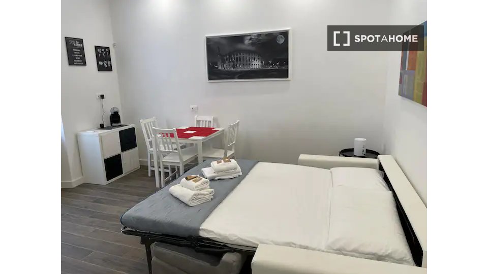 Appartamento ammobiliato con 1 camera da letto in affitto in Via Colletta Pietro. Completa la proprietà cucina attrezzata, aria condizionata, forno e tv. L'appartamento è situato nel quartiere Appio, a pochi passi dalla basilica di San Giovanni ...