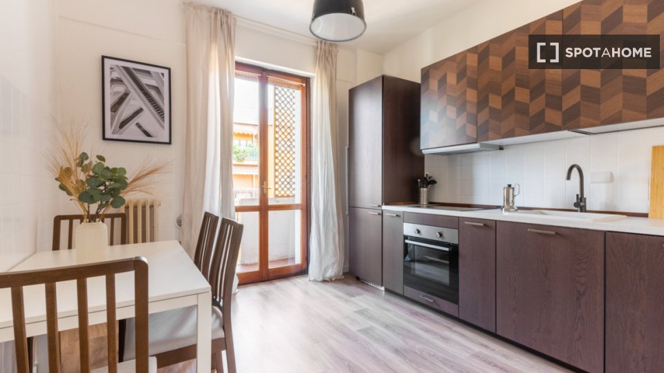 Scopri una stanza in uno spazioso appartamento condiviso con 5 camere da letto situato nel vivace quartiere Nomentano di Roma. Ideale per professionisti, studenti e coppie, questo alloggio offre una lavatrice in comune e una cucina attrezzata per ...