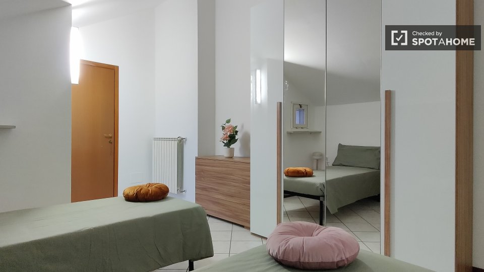 Ci sono 2 camere singole e 1 camera doppia in questo appartamento. Vicino al centro di Bologna e ideale per raggiungere le università. Supermercato 1 minuto a piedi, alcuni ristoranti e caffè nei dintorni.