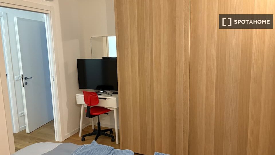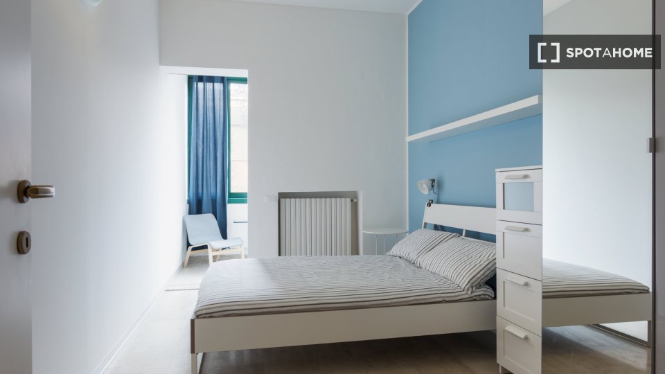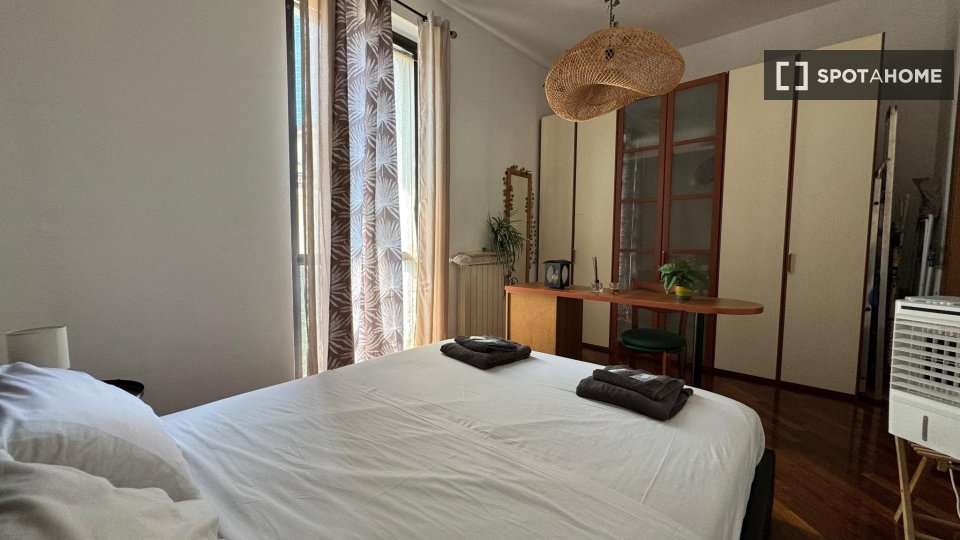 Questa spaziosa camera arredata in un appartamento condiviso con 4 camere da letto a Lorenteggio, Milano, è la scelta ideale per professionisti e studenti. L'immobile dispone di aria condizionata centralizzata, ascensore, balcone, lavatrice privat...