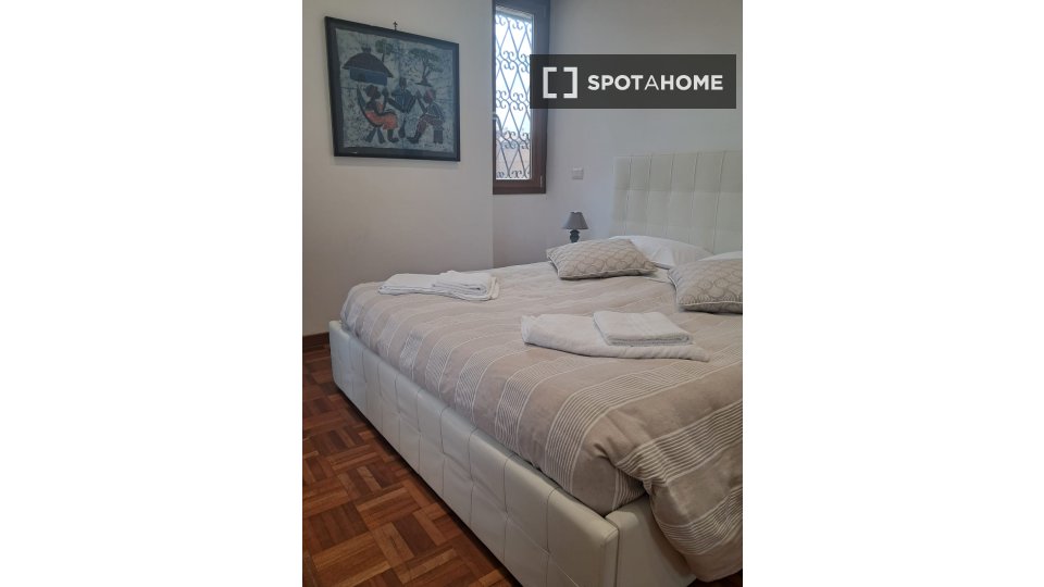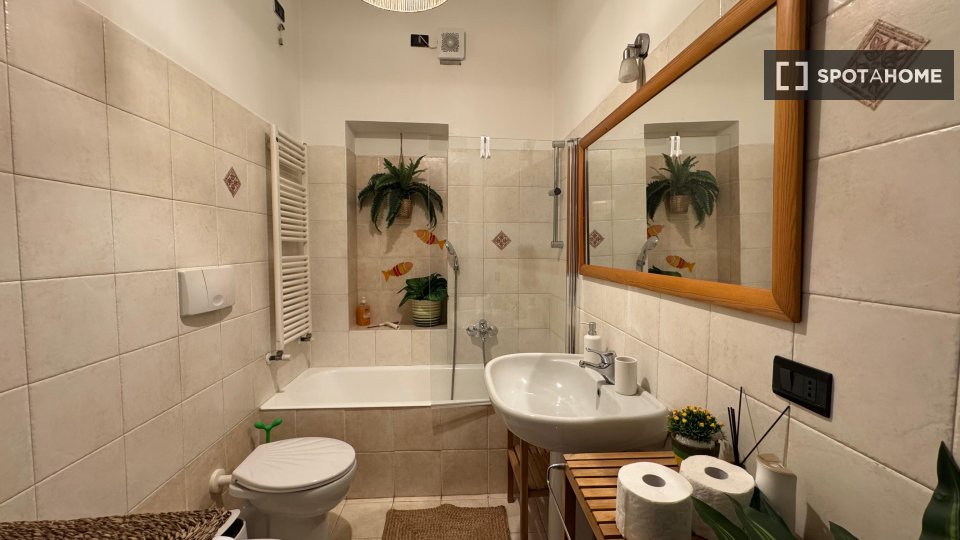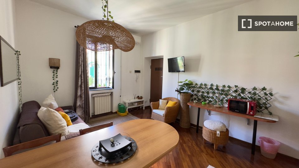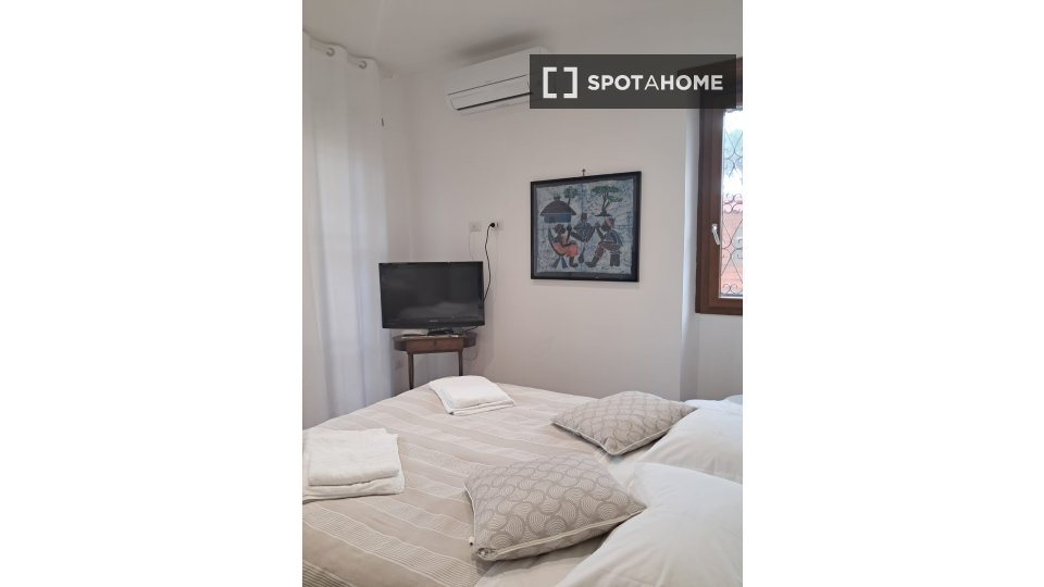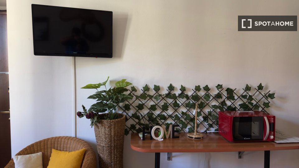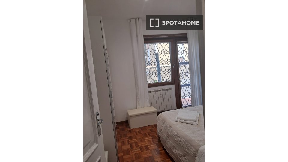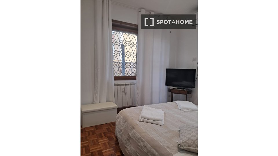Questa stanza in un appartamento condiviso con 2 camere da letto a Tuscolano Nord, Roma, offre uno spazio arredato con aria condizionata individuale e riscaldamento a gas naturale. L'appartamento dispone di una cucina completamente attrezzata con ...
