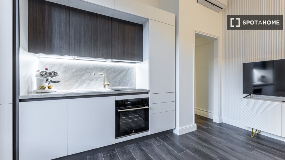 Entrate in questo grazioso monolocale, dove comfort e funzionalità incontrano lo stile. Il monolocale è completamente arredato e dispone di riscaldamento centralizzato e aria condizionata individuale. La cucina attrezzata è dotata di lavastoviglie...
