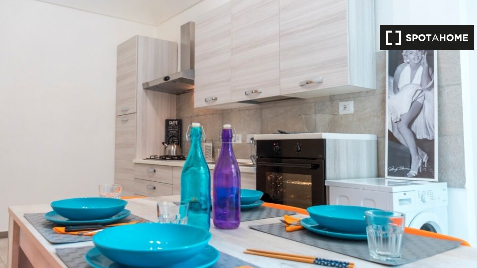 Questo grazioso monolocale si trova a Malpighi, Bologna. L'unità è completamente arredata e dotata di comfort come aria condizionata centralizzata e riscaldamento a gas metano. La cucina è ben attrezzata, con forno, e l'accesso a una lavatrice in ...