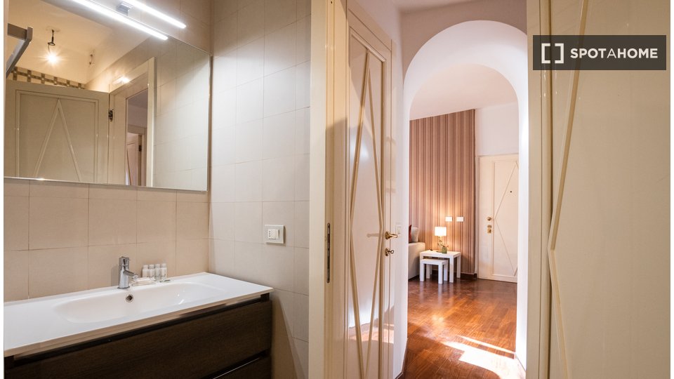 Raffinato bilocale di circa 65mq recentemente ristrutturato con eleganza e cura dei dettagli. Situato al 4° piano di un palazzo d'epoca classica con servizio di portineria e ascensore. L'appartamento è dotato di aria condizionata e pavimenti in pa...