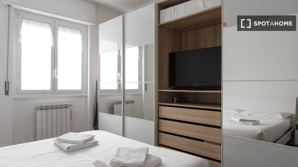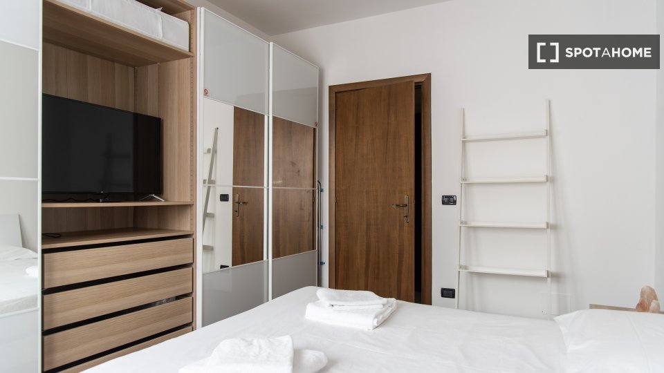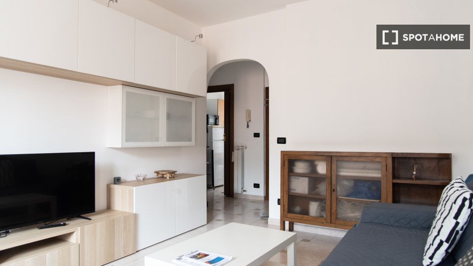 Vivi un soggiorno confortevole in questo appartamento con una camera da letto situato nel quartiere Tre Torri di Milano. Questo appartamento arredato dispone di aria condizionata centralizzata, lavatrice in comune, lavastoviglie e TV per il tuo te...