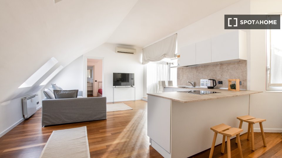 Questo grazioso appartamento con 2 camere da letto a Brera è perfetto per chi cerca un ambiente elegante e confortevole a Milano. Dettagli come il riscaldamento a gas metano, una cucina attrezzata con lavastoviglie e il WiFi rendono questo apparta...