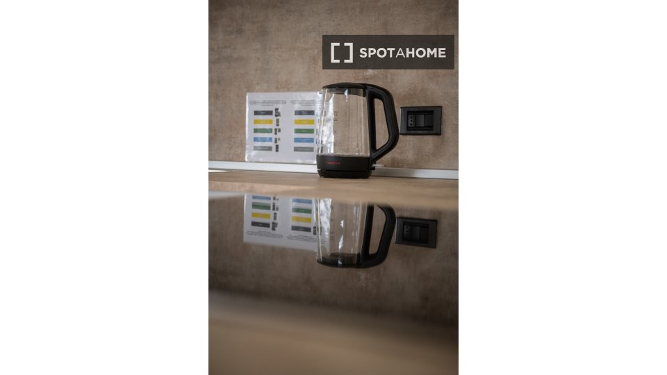 Camere in affitto in un residence in Via Del Porrione. Completa la proprietà la cucina comune.